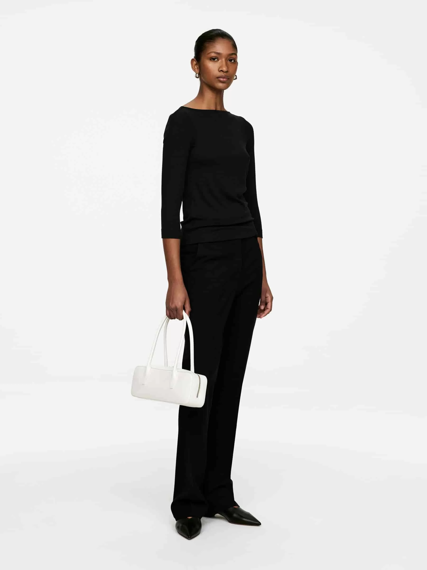Rib-knitted top crafted from lyocell. A slim-fitted style with 3/4 length sleeves.