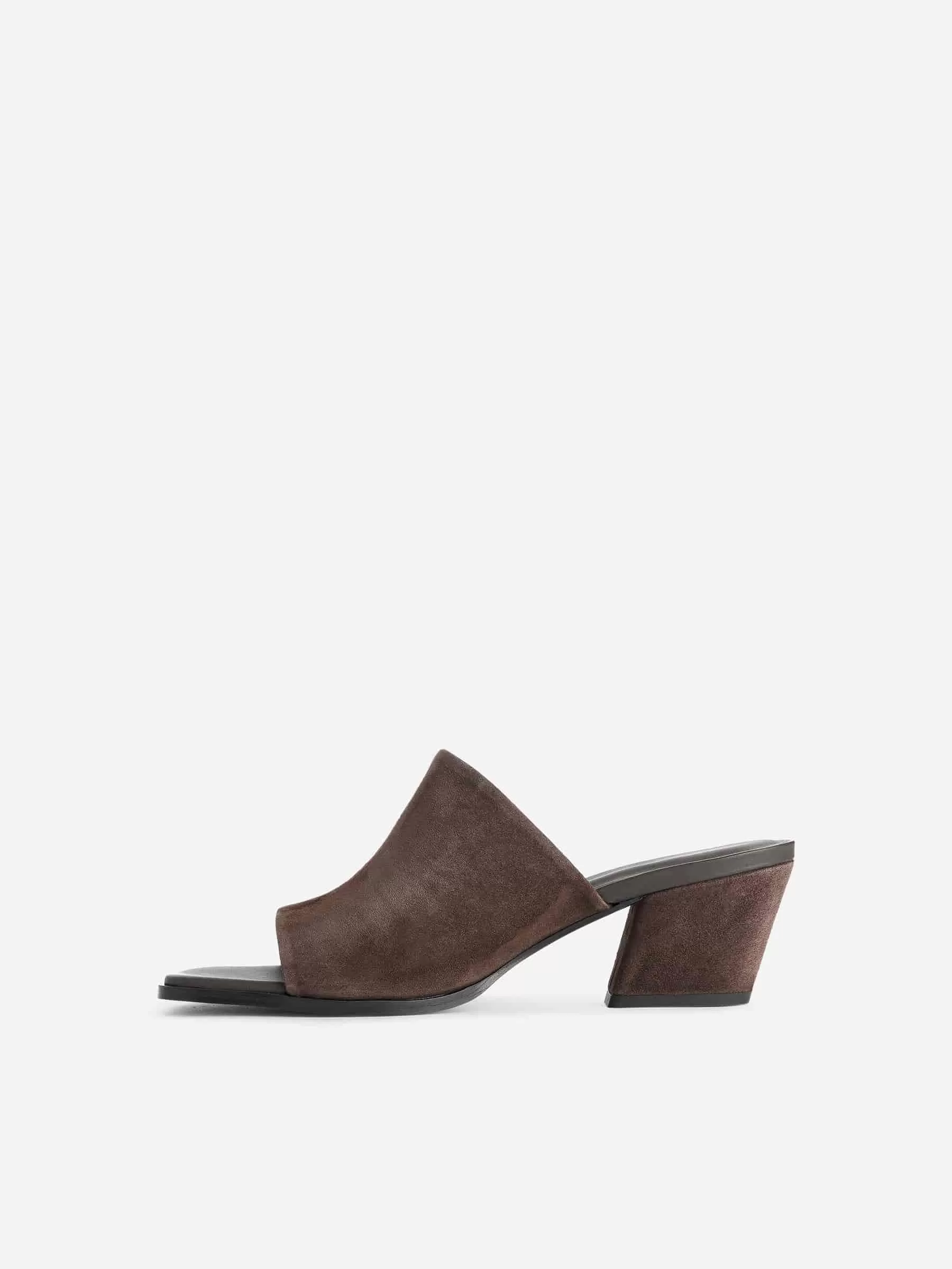 Open-toe sandals crafted from suede. Styled with a comfortable block heel and a decorative middle seam in the centre front. Heel height 5.5 cm.