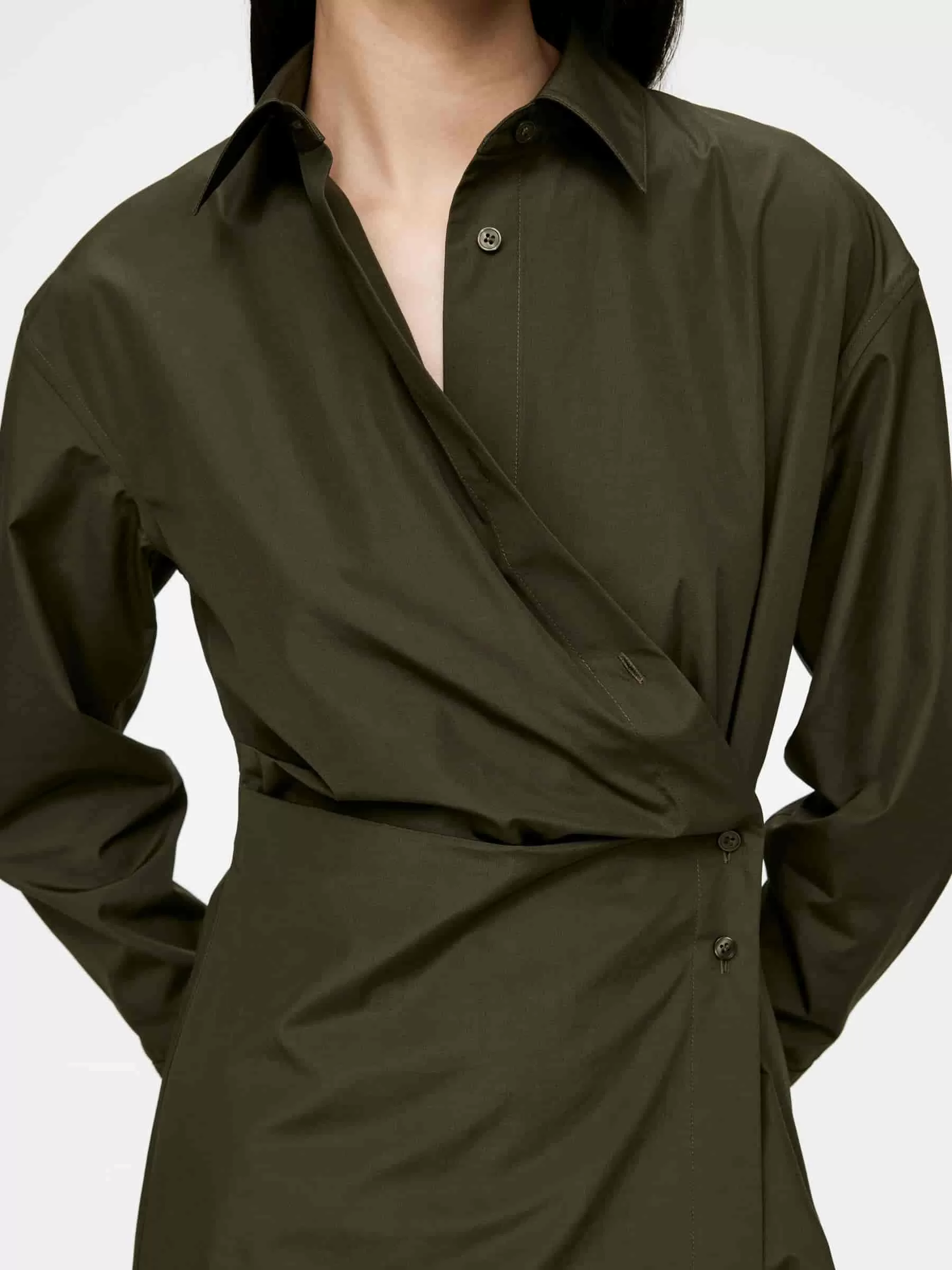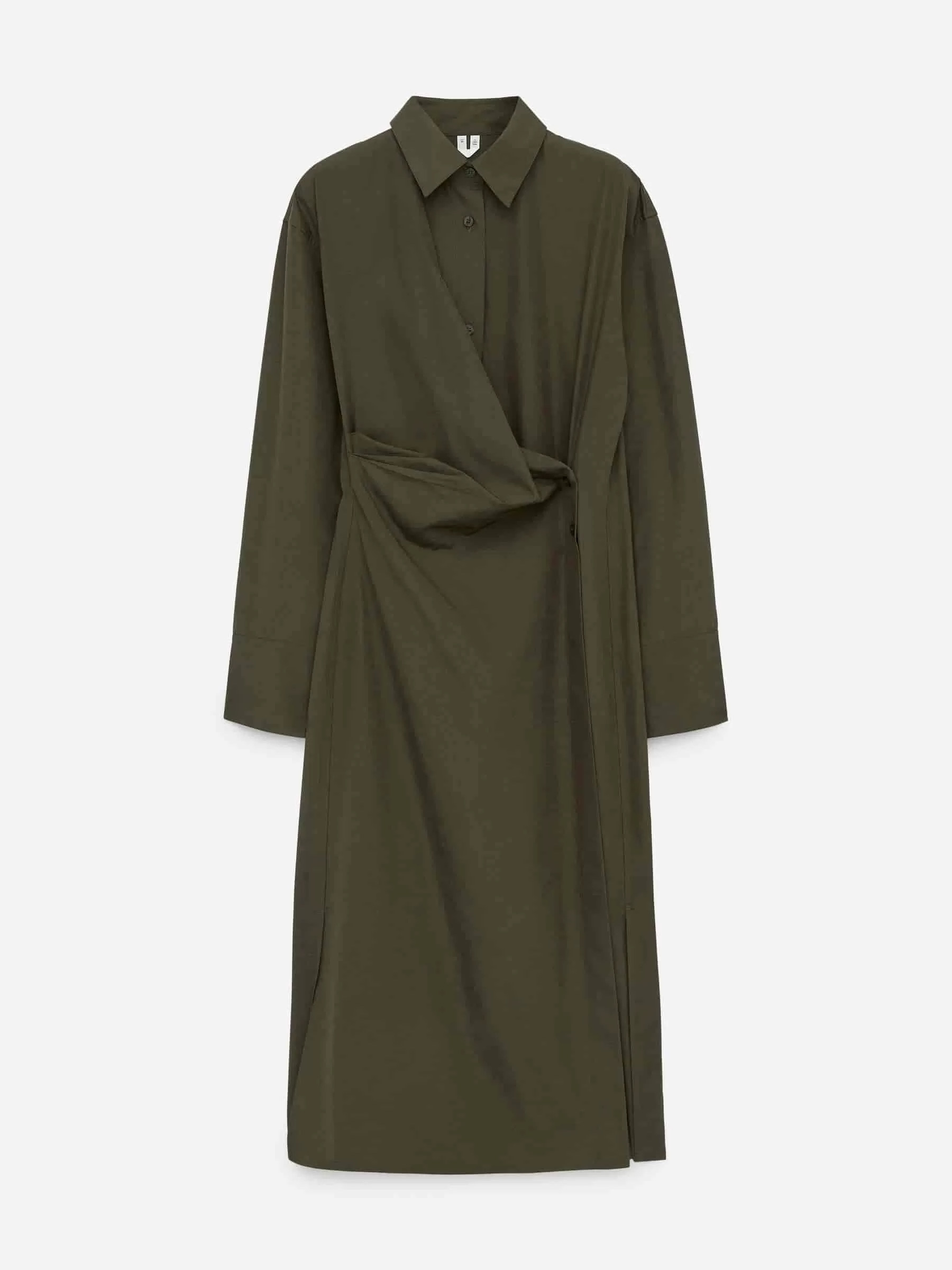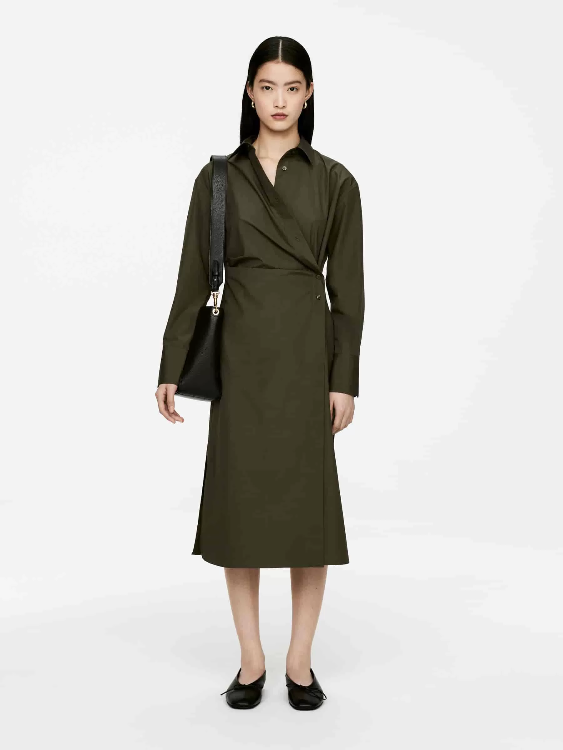 Wrap dress crafted from cotton with a hint of elastane for stretch. A mid-length style with slit at sides and button closure. Regular fit.