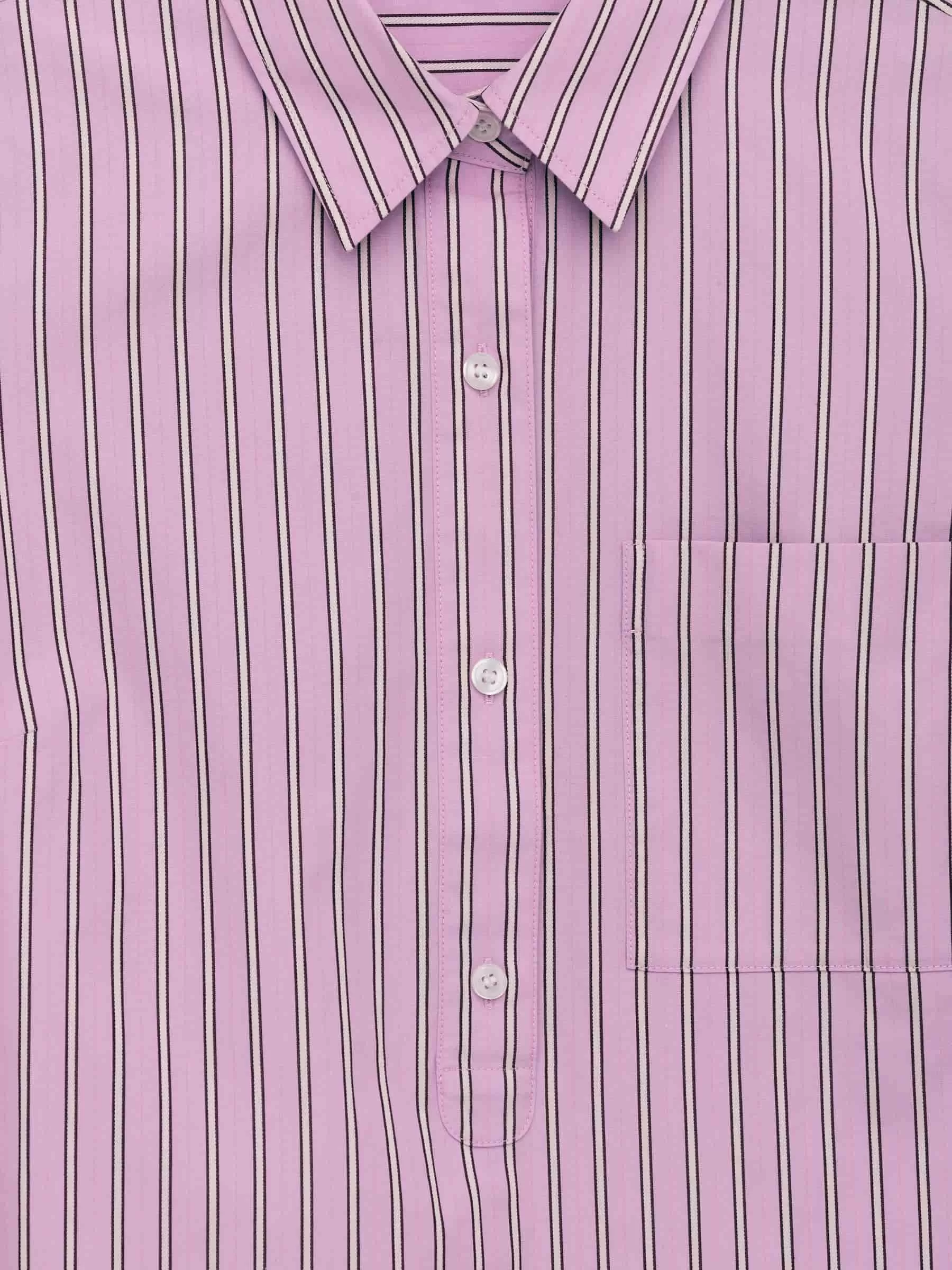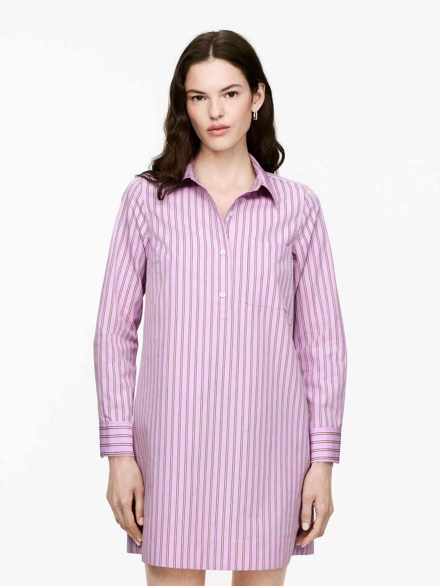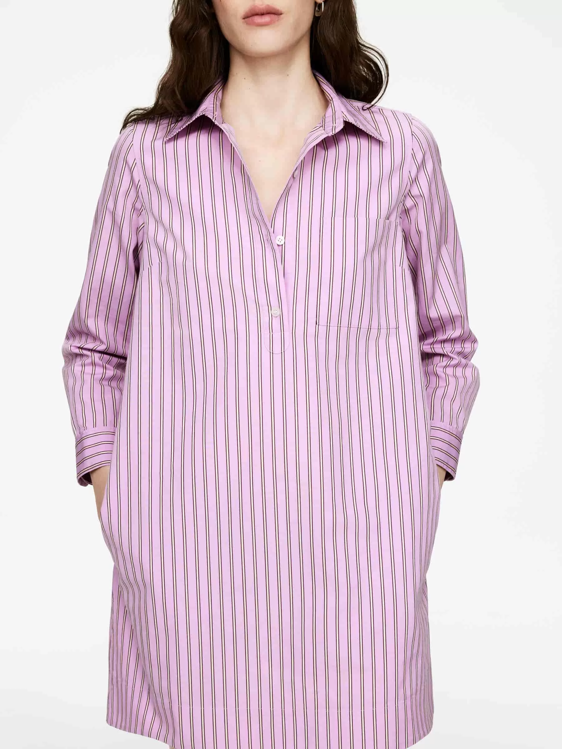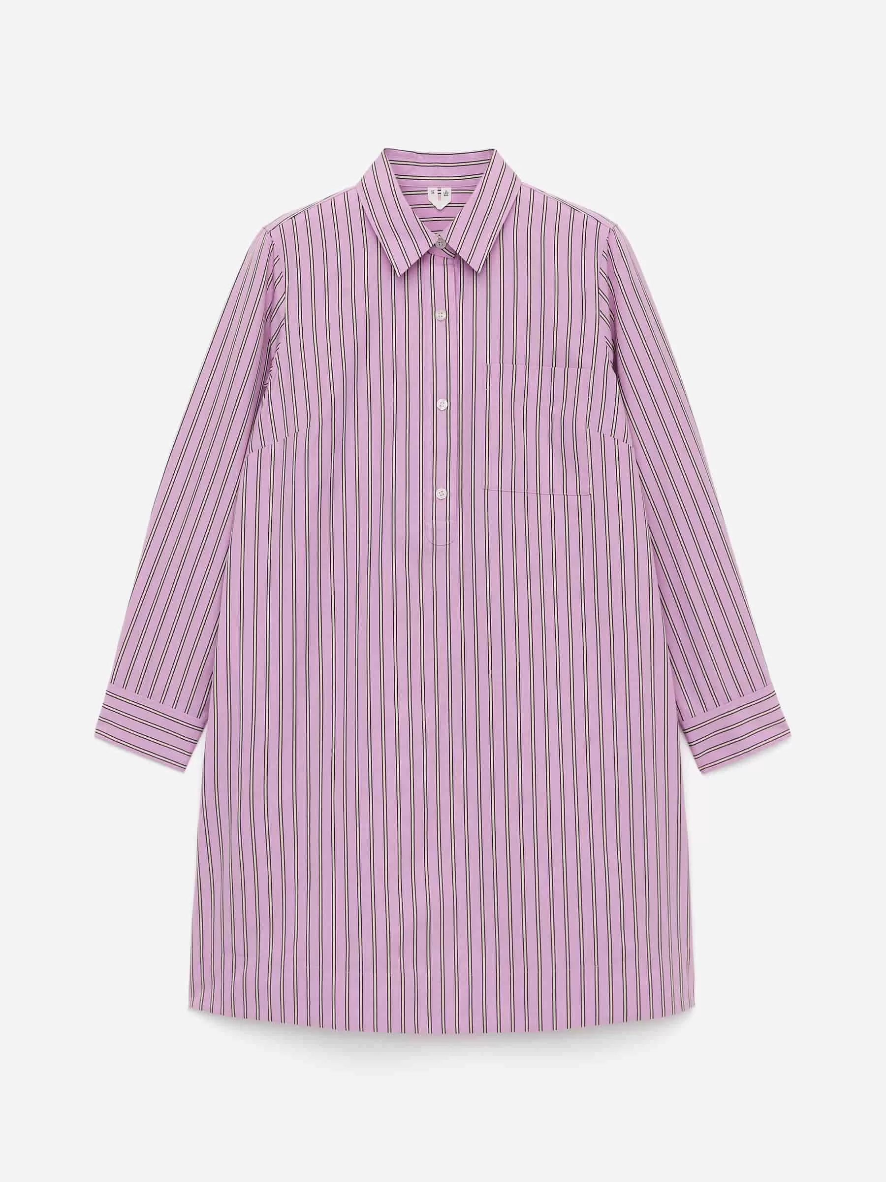 Short-length shirt dress crafted from cotton. Styled with buttoned half placket, single chest pocket and side pockets. Regular fit.