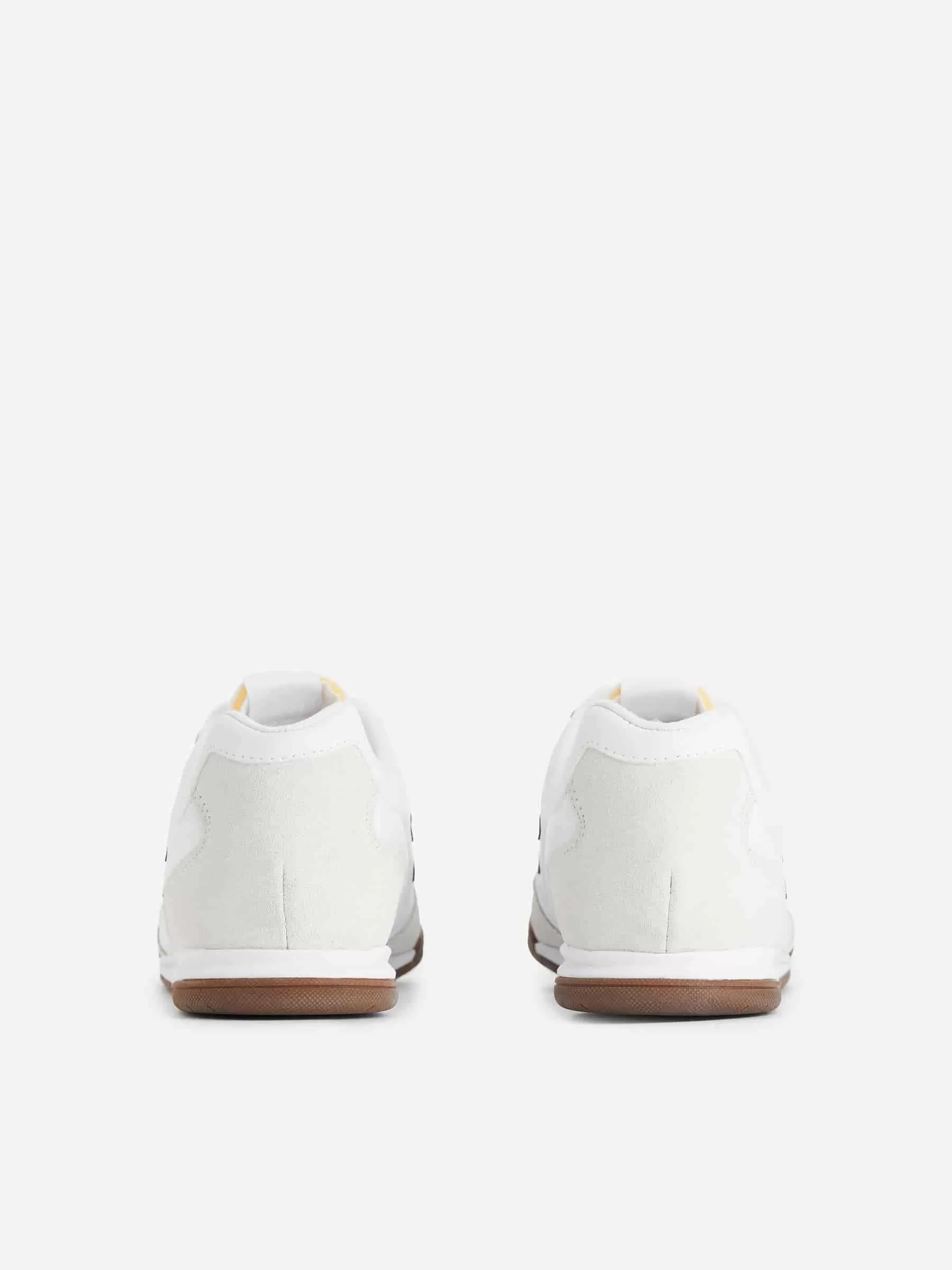 The RC42 model from New Balance features a minimalist, retro-inspired silhouette. Made from leather with suede panels and cushioned rubber soles.