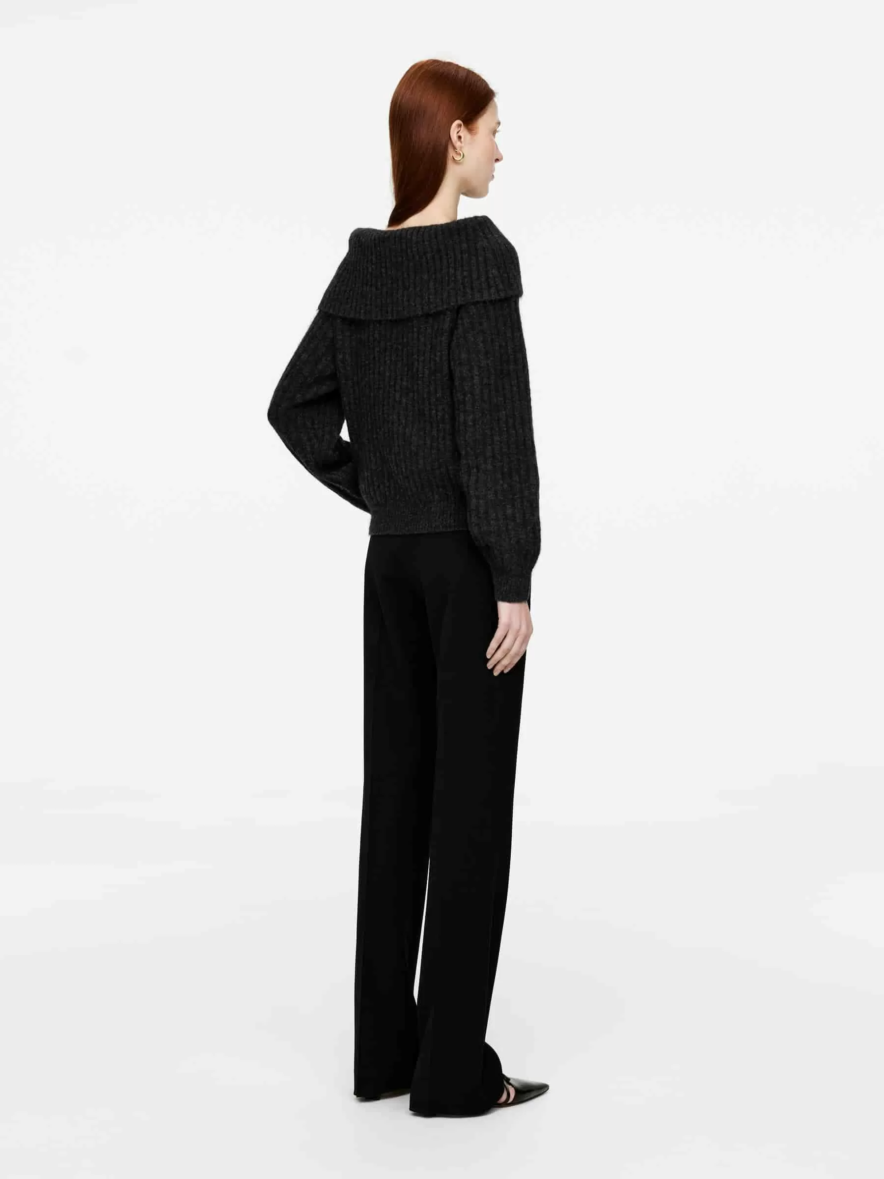 Off-shoulder jumper with a folded neck. This style is rib-knitted from an alpaca-wool blend. Slightly oversized fit. The jumper contains 31% RWS wool (TE-00047206). Products certified to the Responsible Wool Standard (RWS) contain wool fiber from farms independently certified to animal welfare and land management requirements.