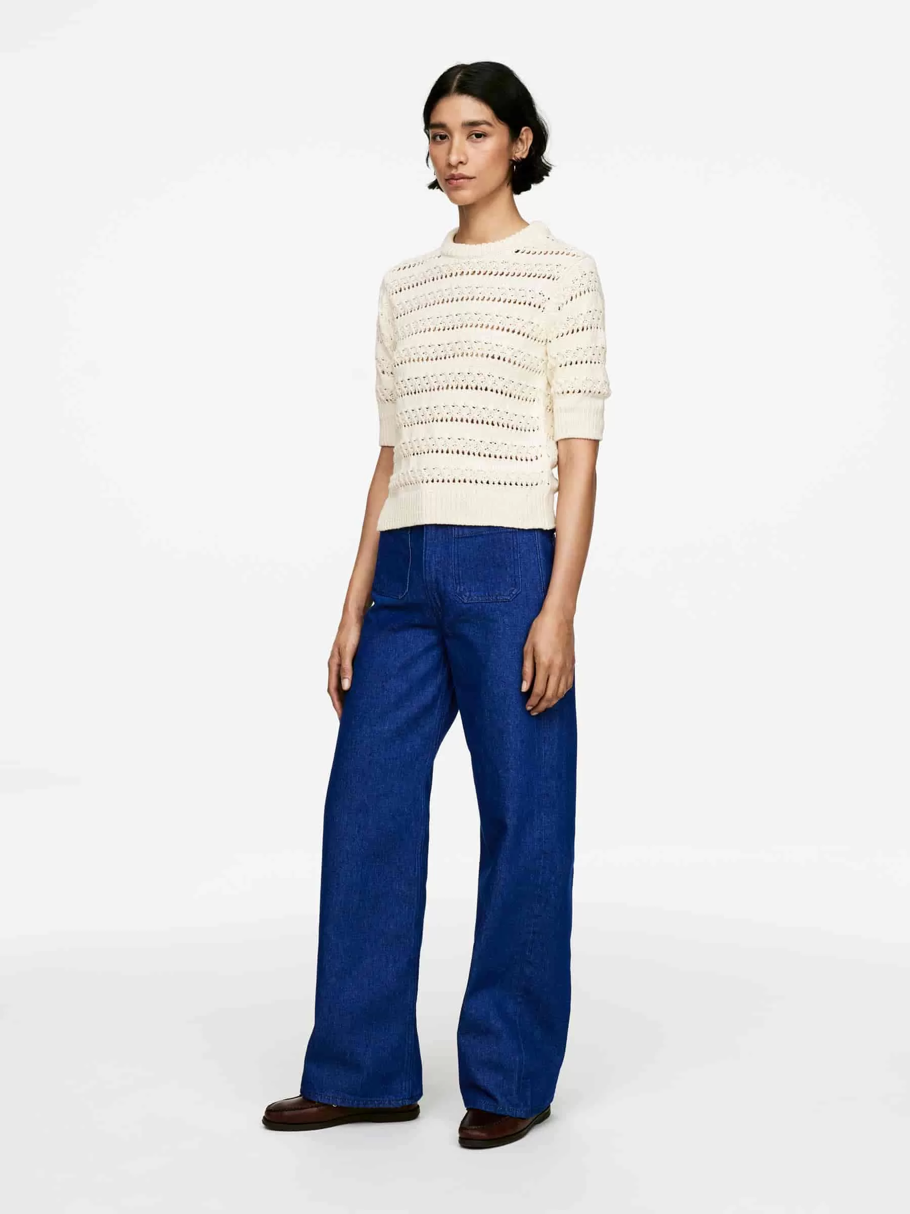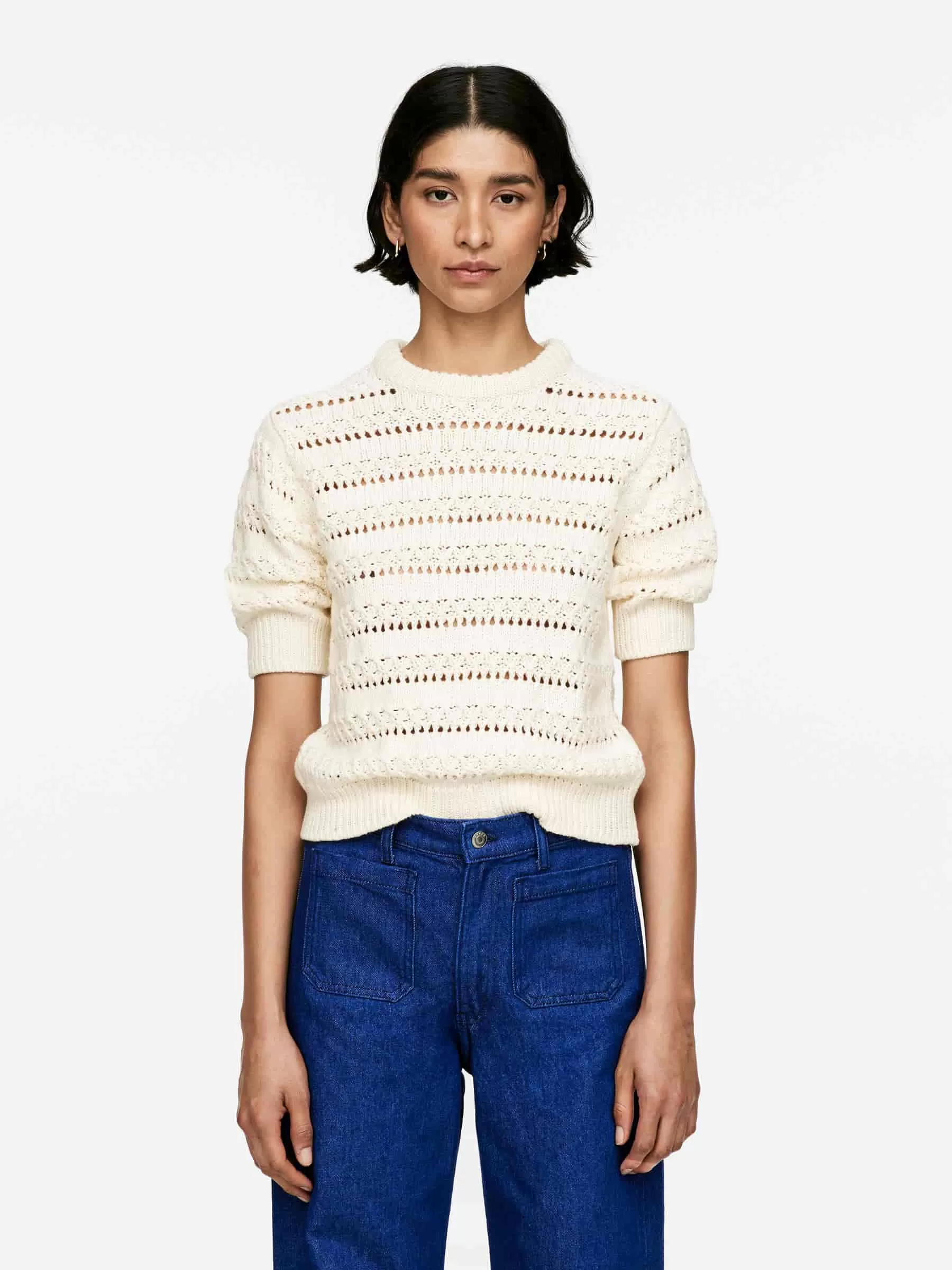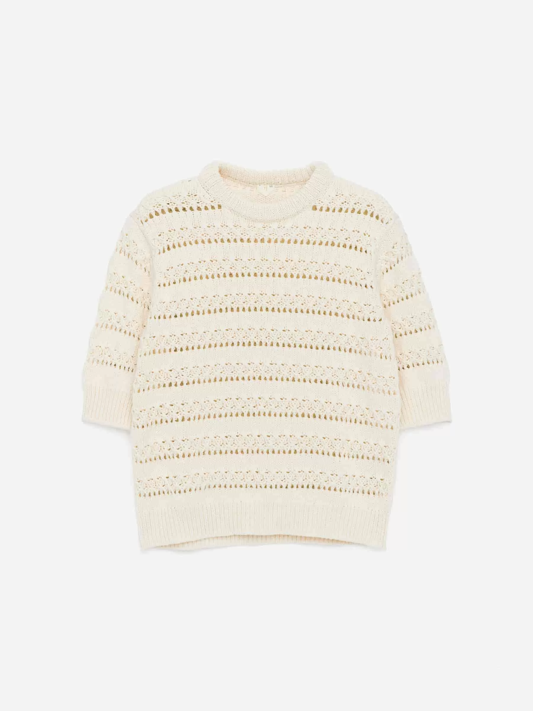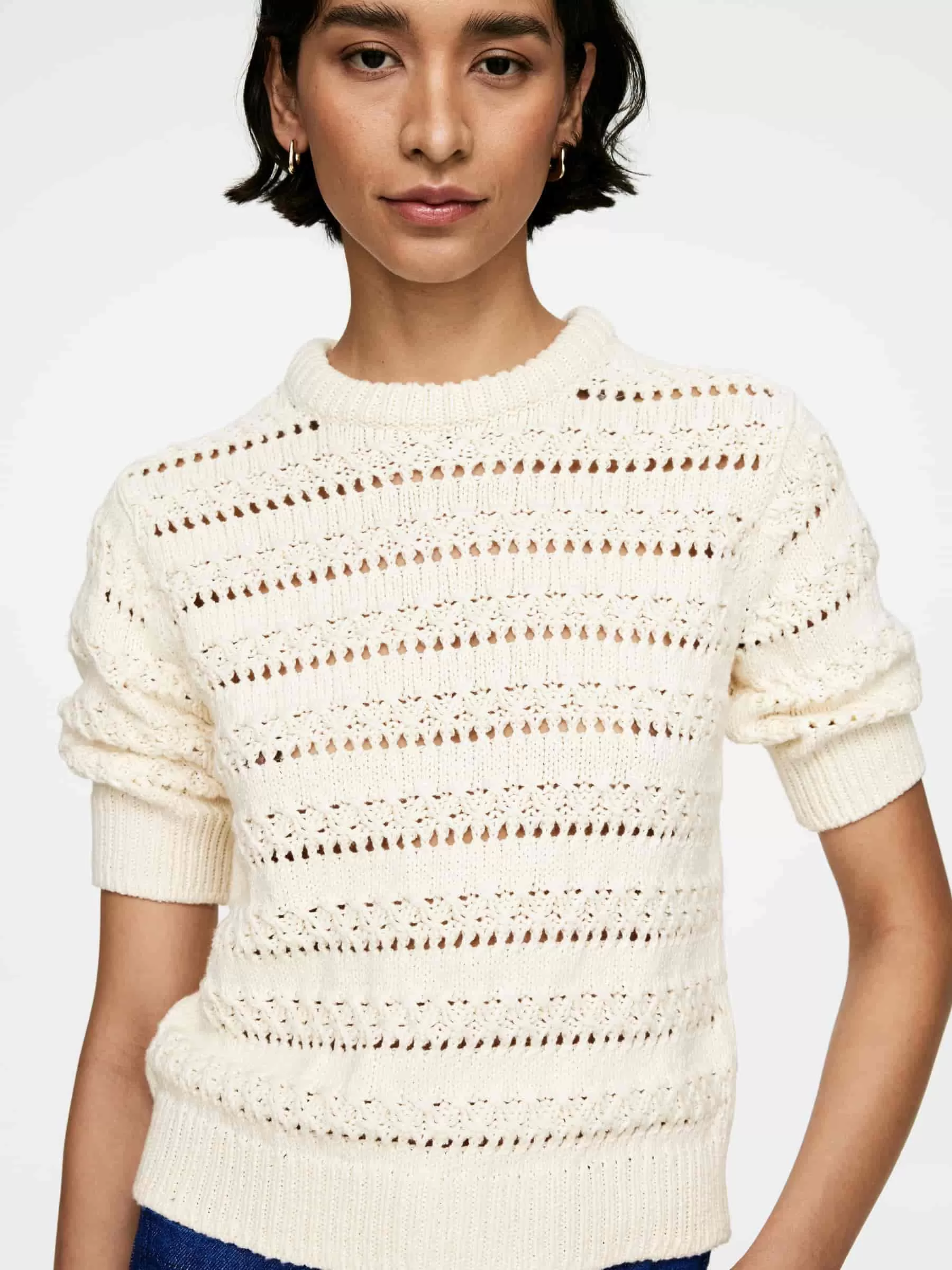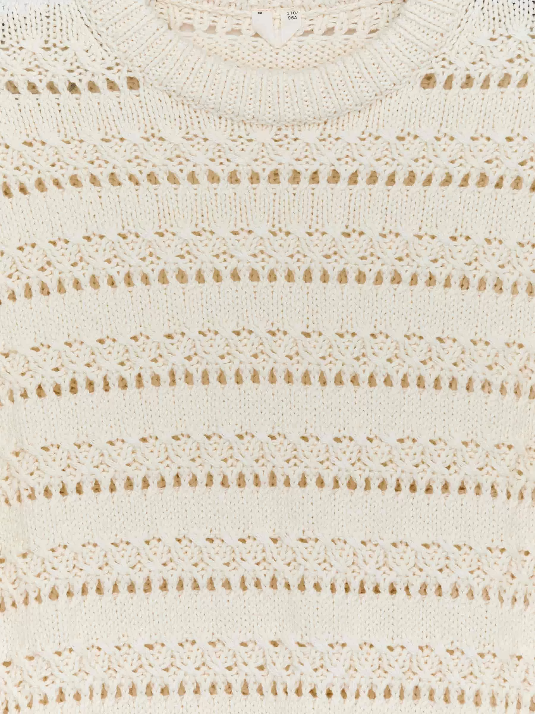 Short-sleeve top knitted from cotton with open-knit detailing. Regular fit.