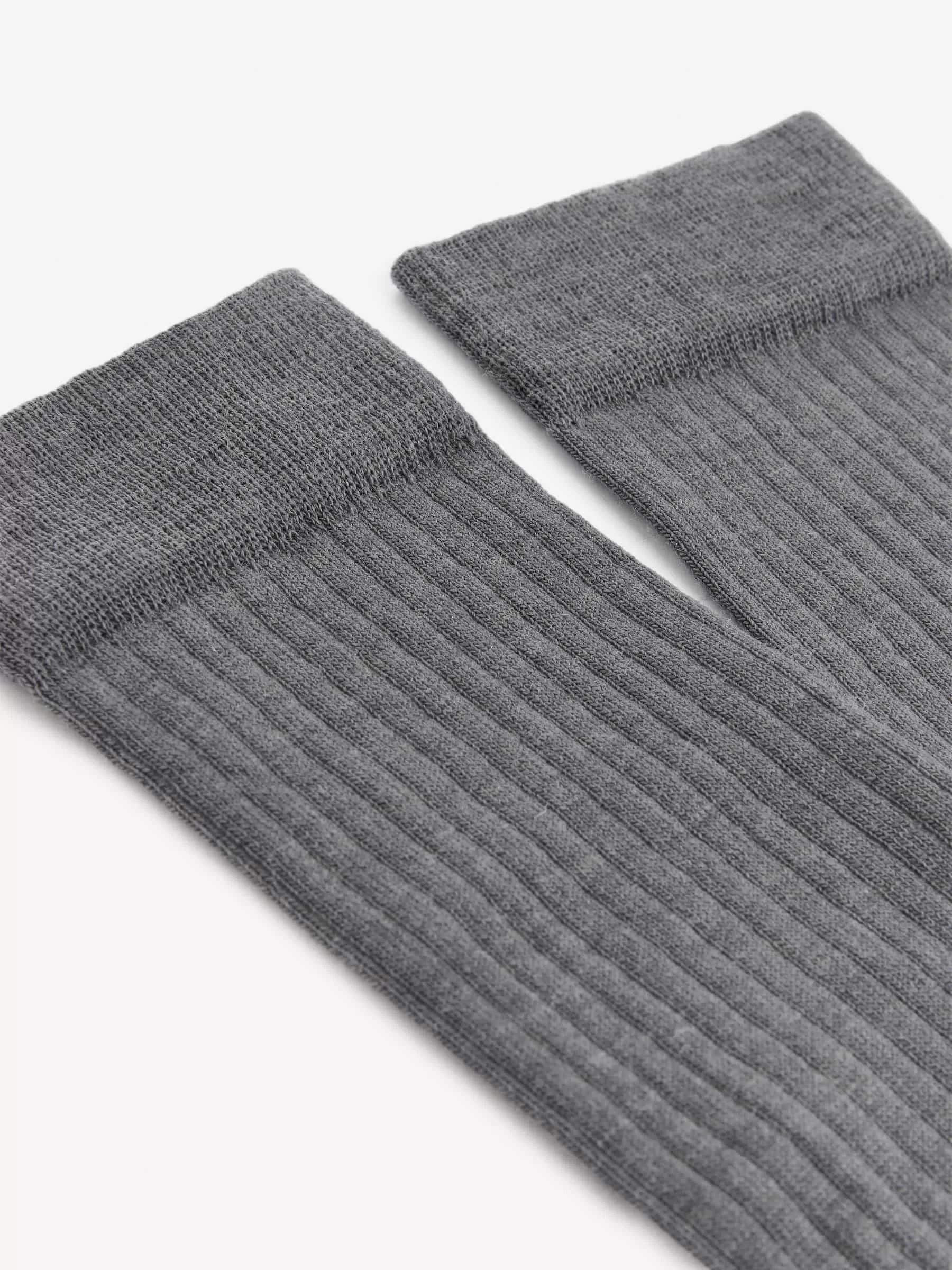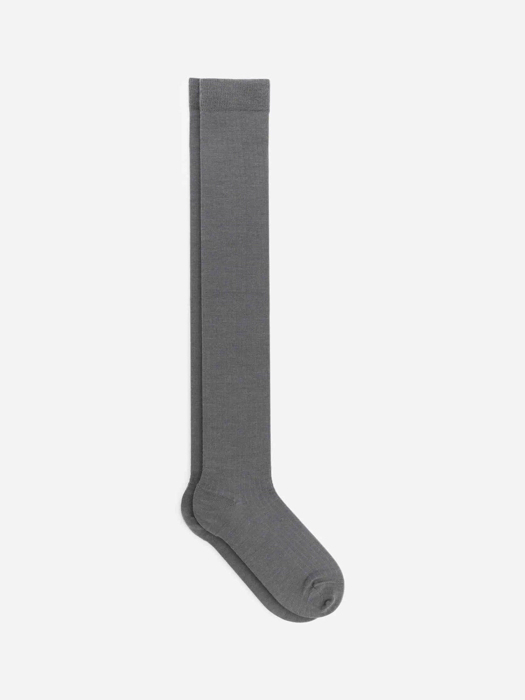Ribbed over-the-knee socks crafted from a wool blend. The socks contain 60% RWS wool, certified by control union 822940. Products certified to the Responsible Wool Standard (RWS) contain wool fiber from farms independently certified to animal welfare and land management requirements.
