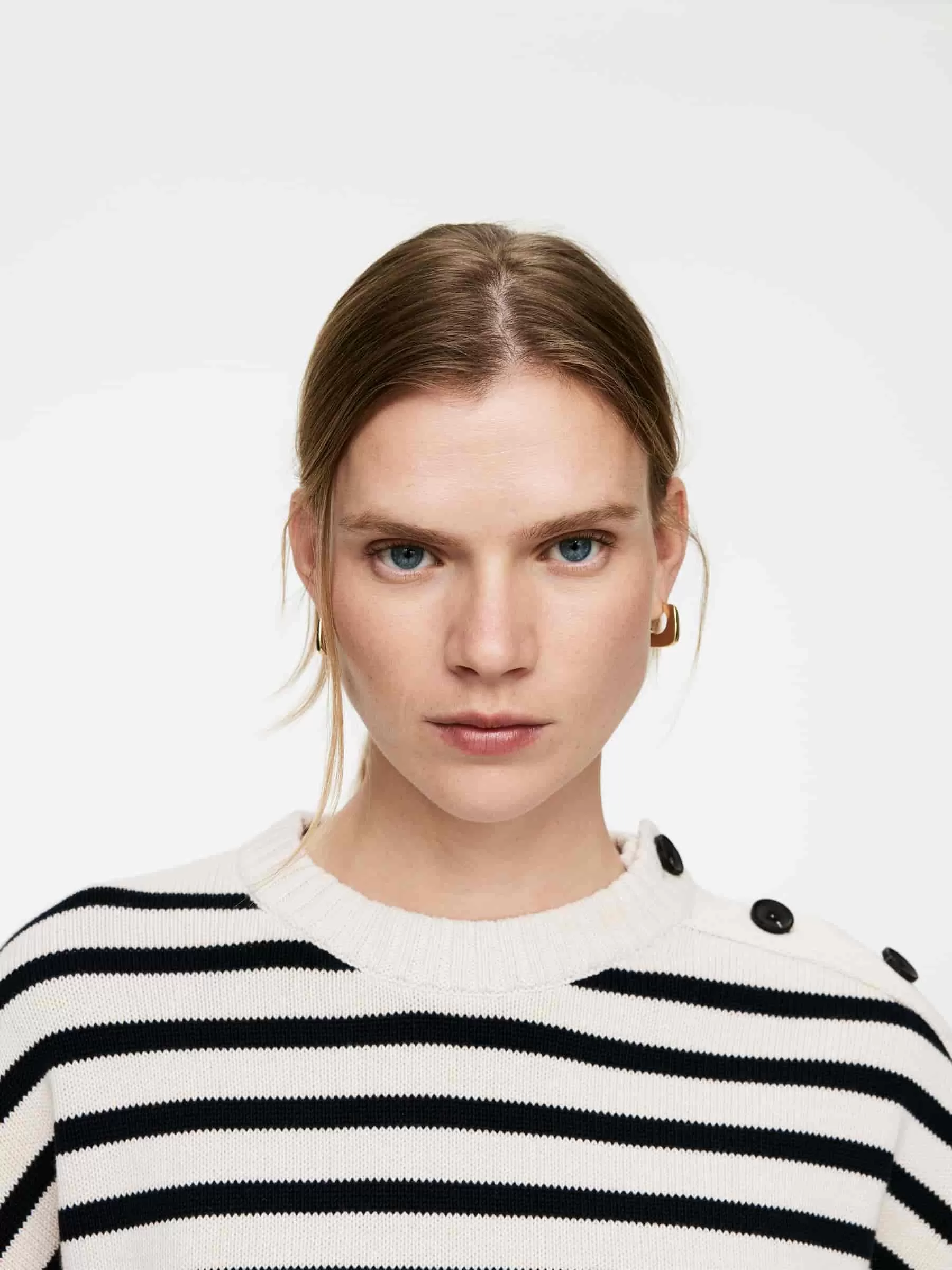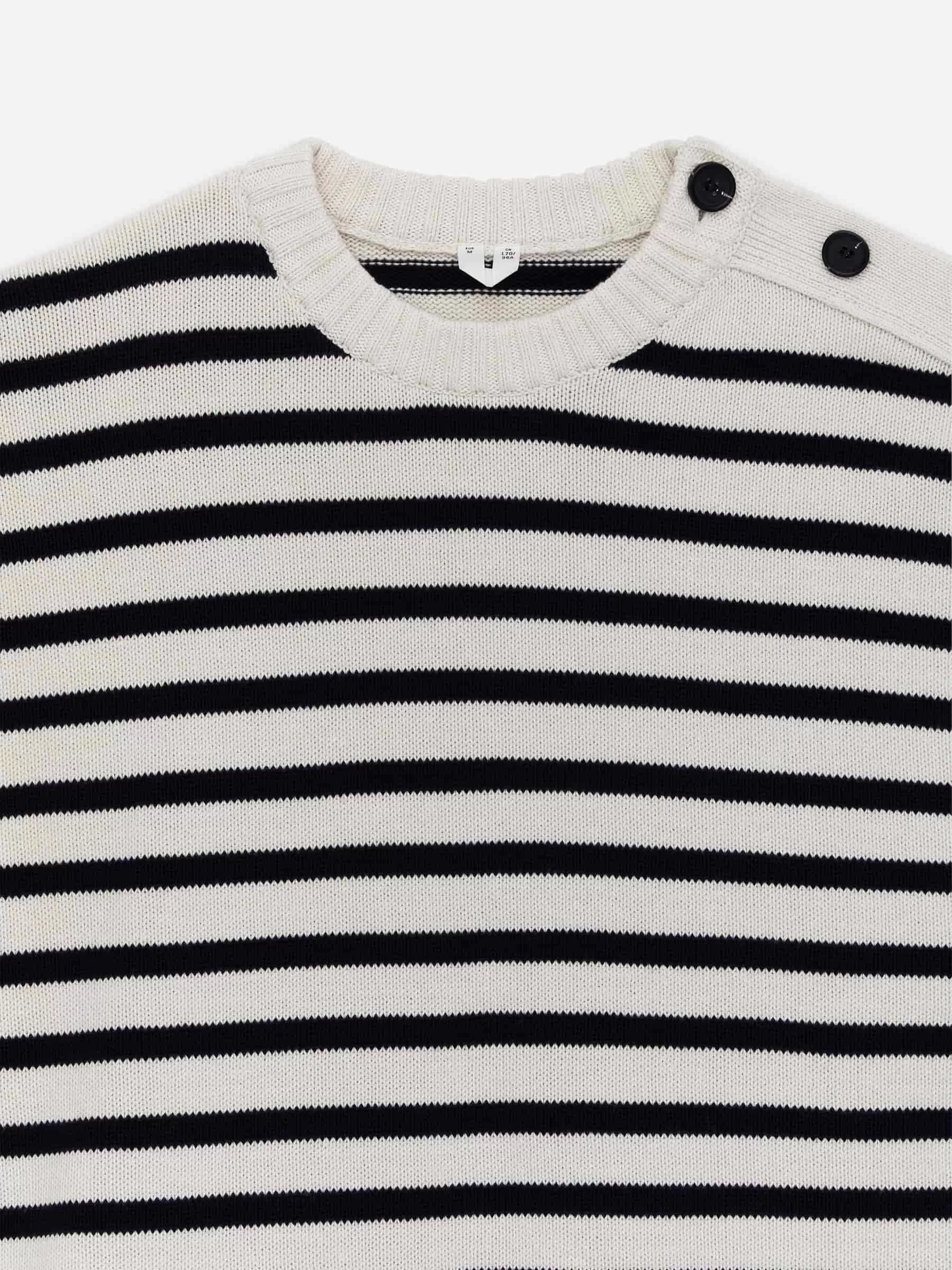 Designed for a relaxed fit, this soft cotton jumper is styled with buttons at the side of the neck. Ribbed trims.