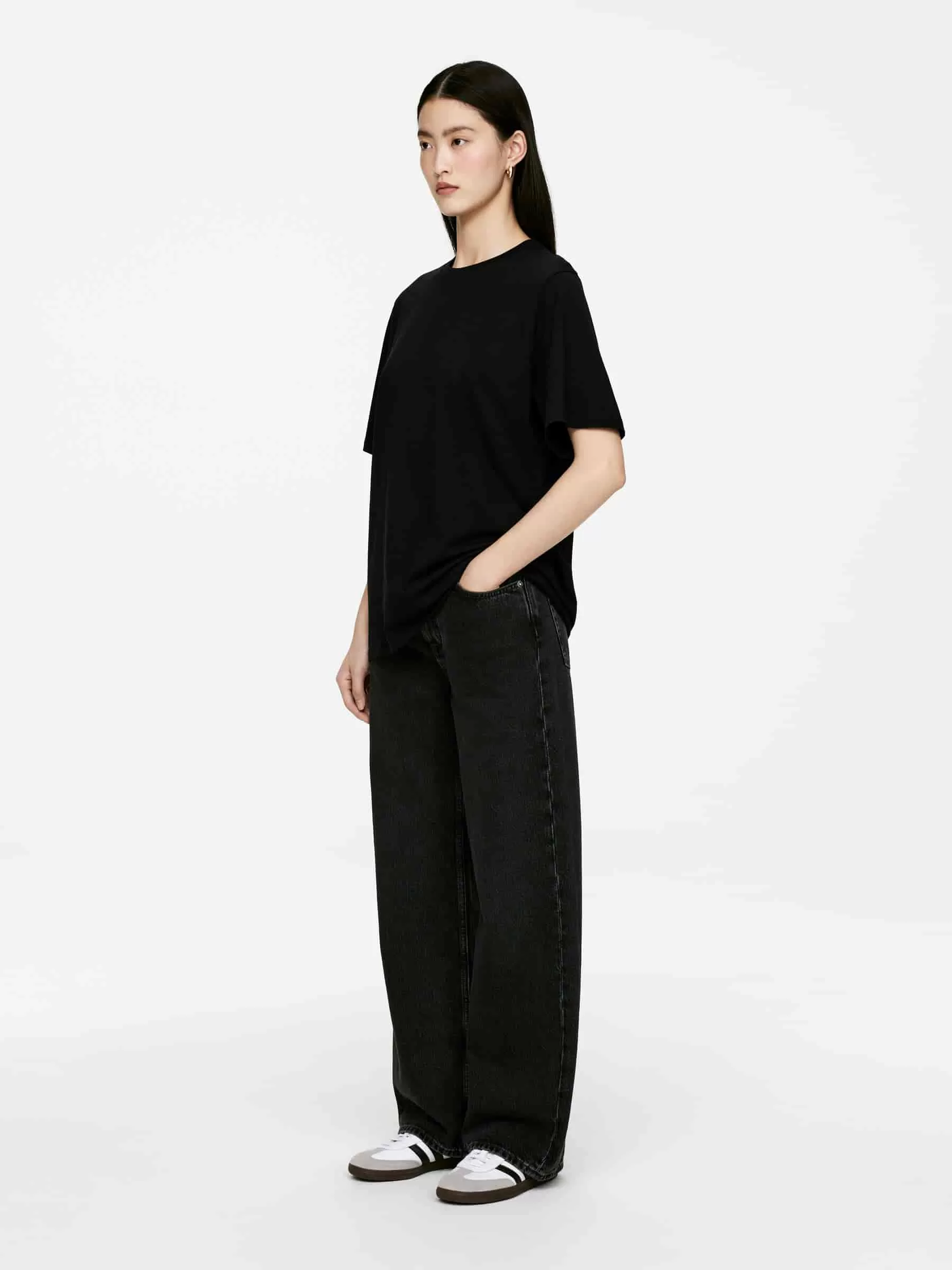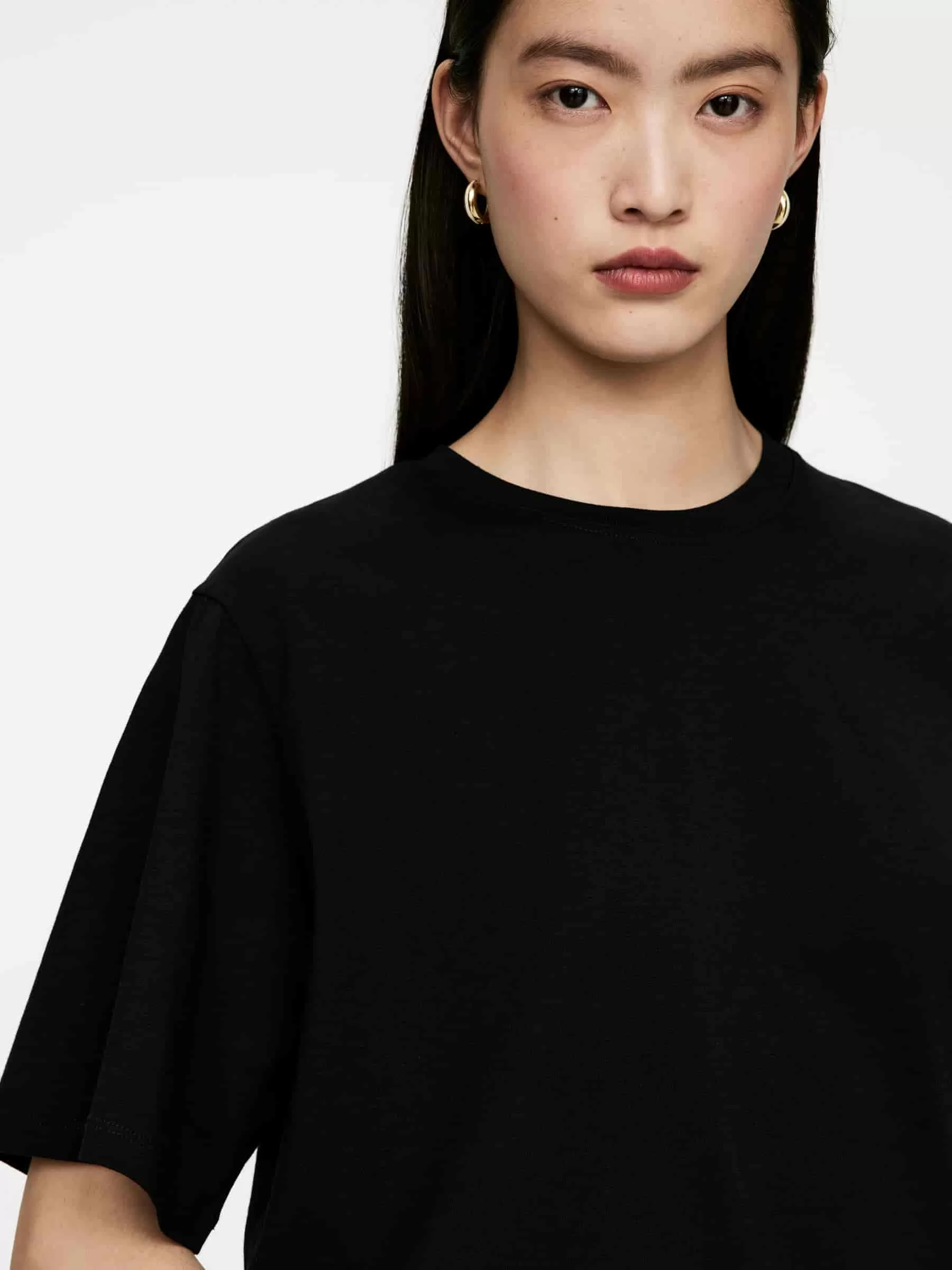Oversized T-shirt crafted from a soft cotton jersey. Styled with a wider ribbed neck trim and wide sleeves.