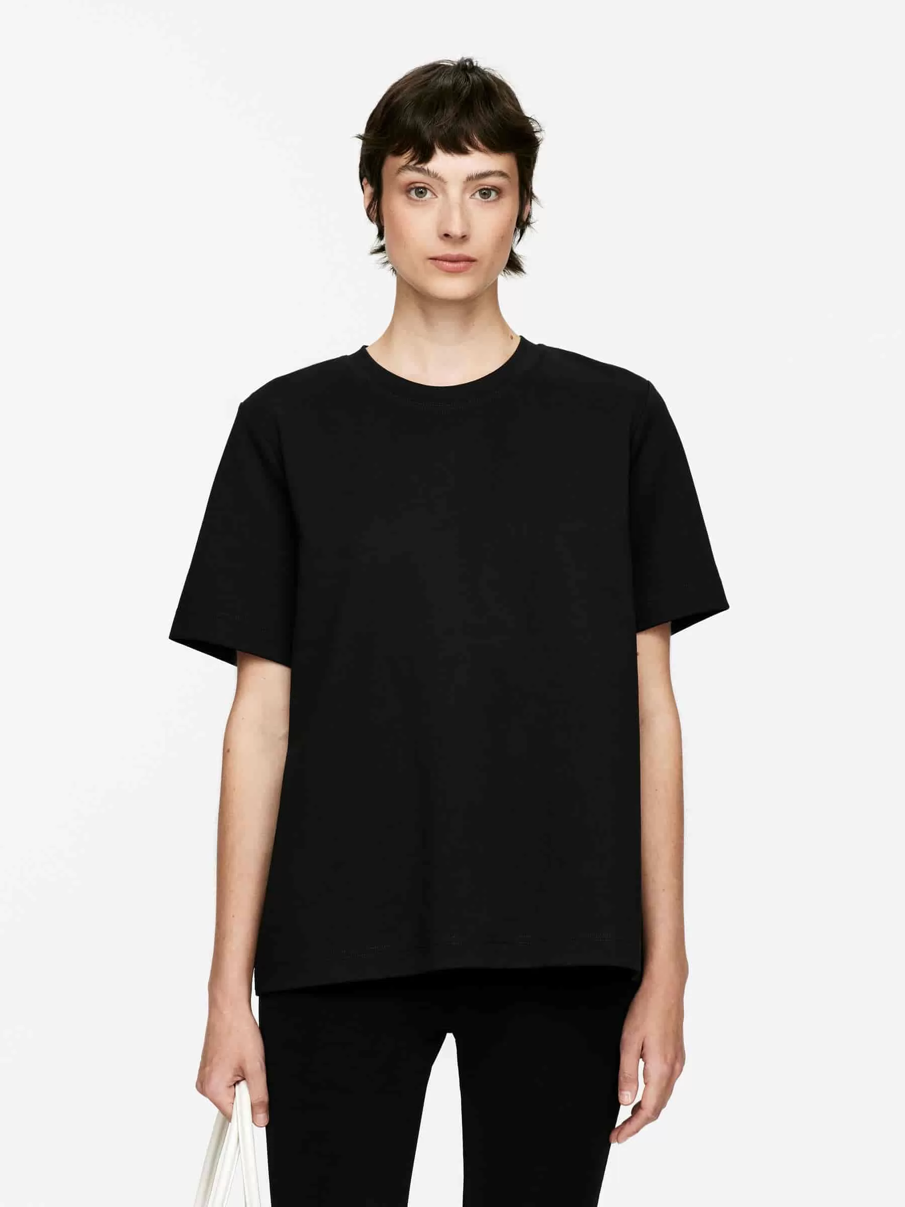 T-shirt cut from a heavy interlock jersey. The sturdy but soft feel gives a smart look that stays in shape. A short-sleeved style with a round neckline and classic fit.