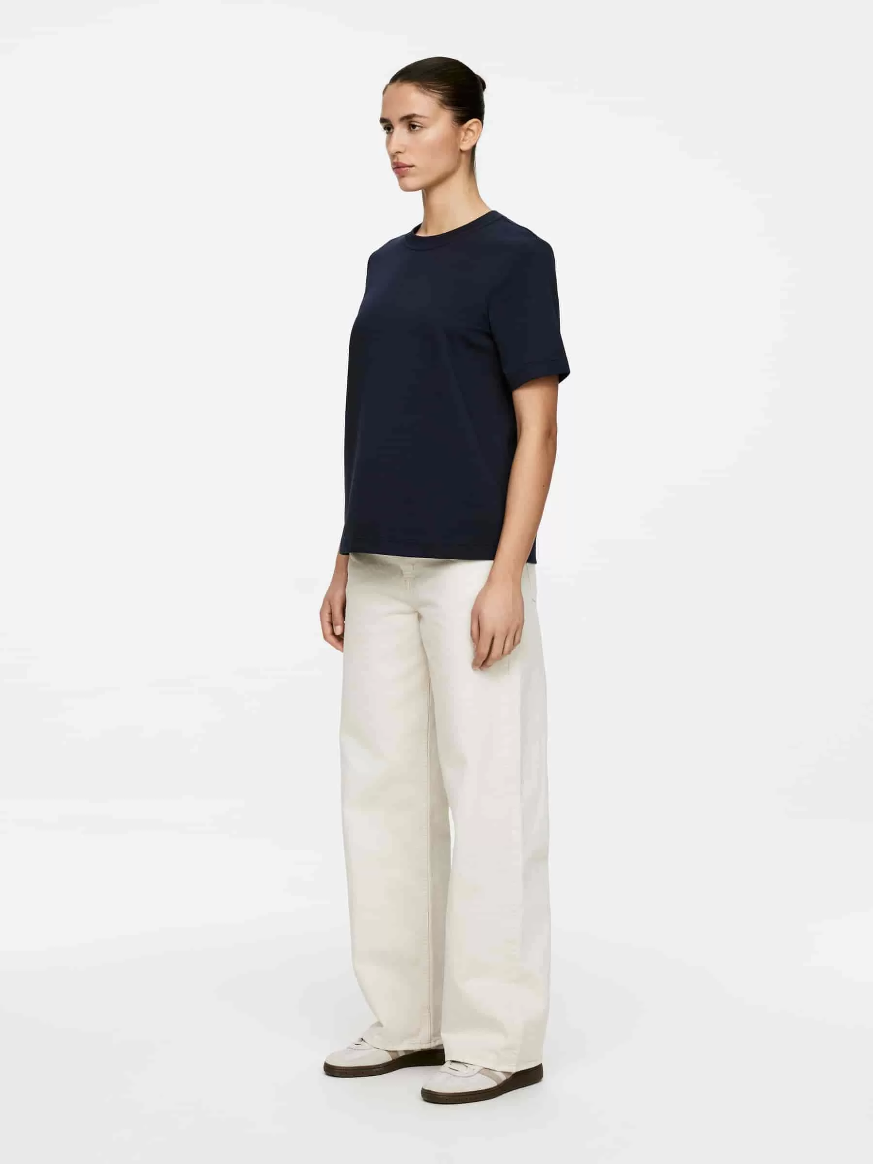 T-shirt cut from a heavy interlock jersey. The sturdy but soft feel gives a smart look that stays in shape. A short-sleeved style with a round neckline and classic fit.