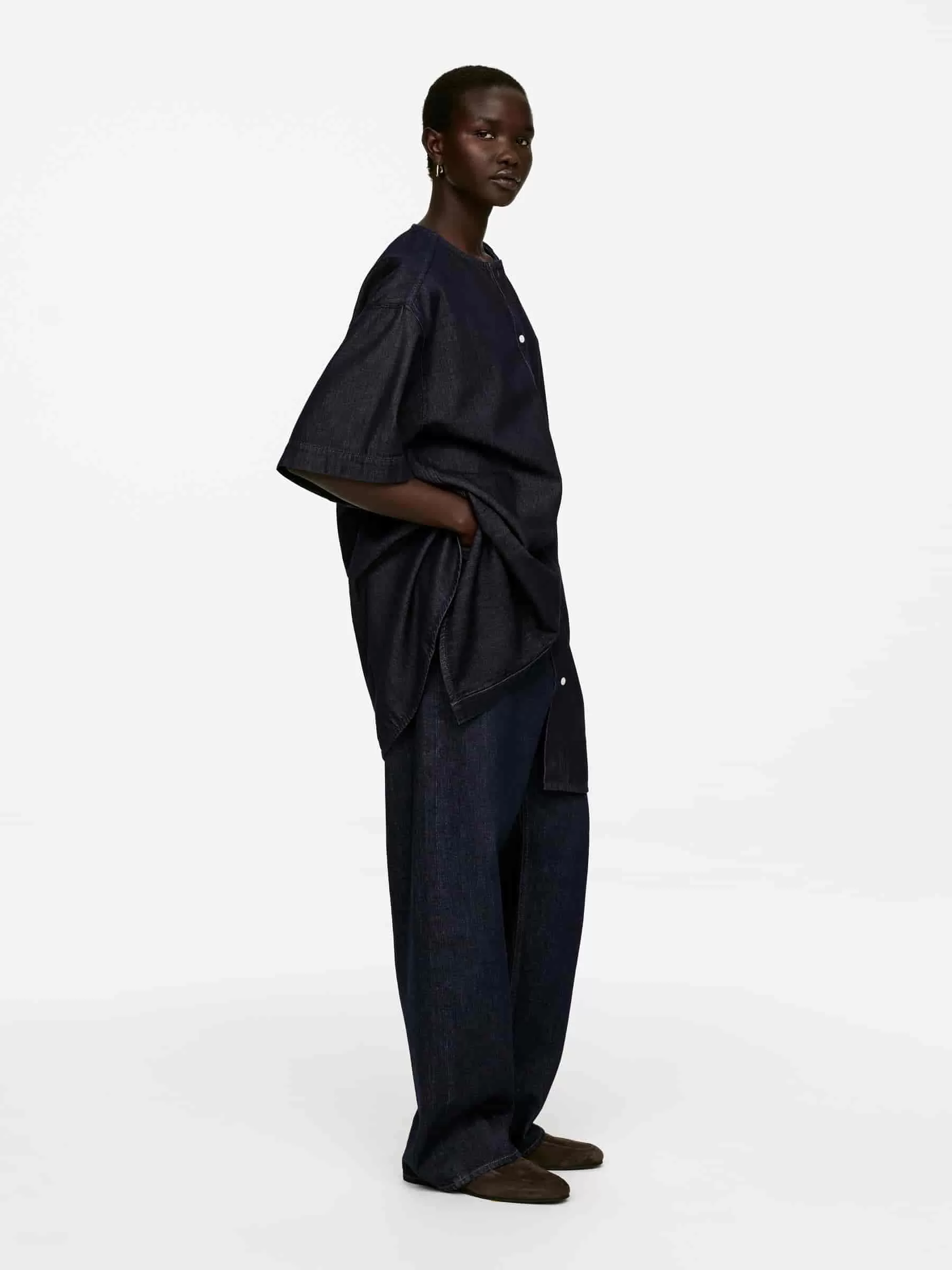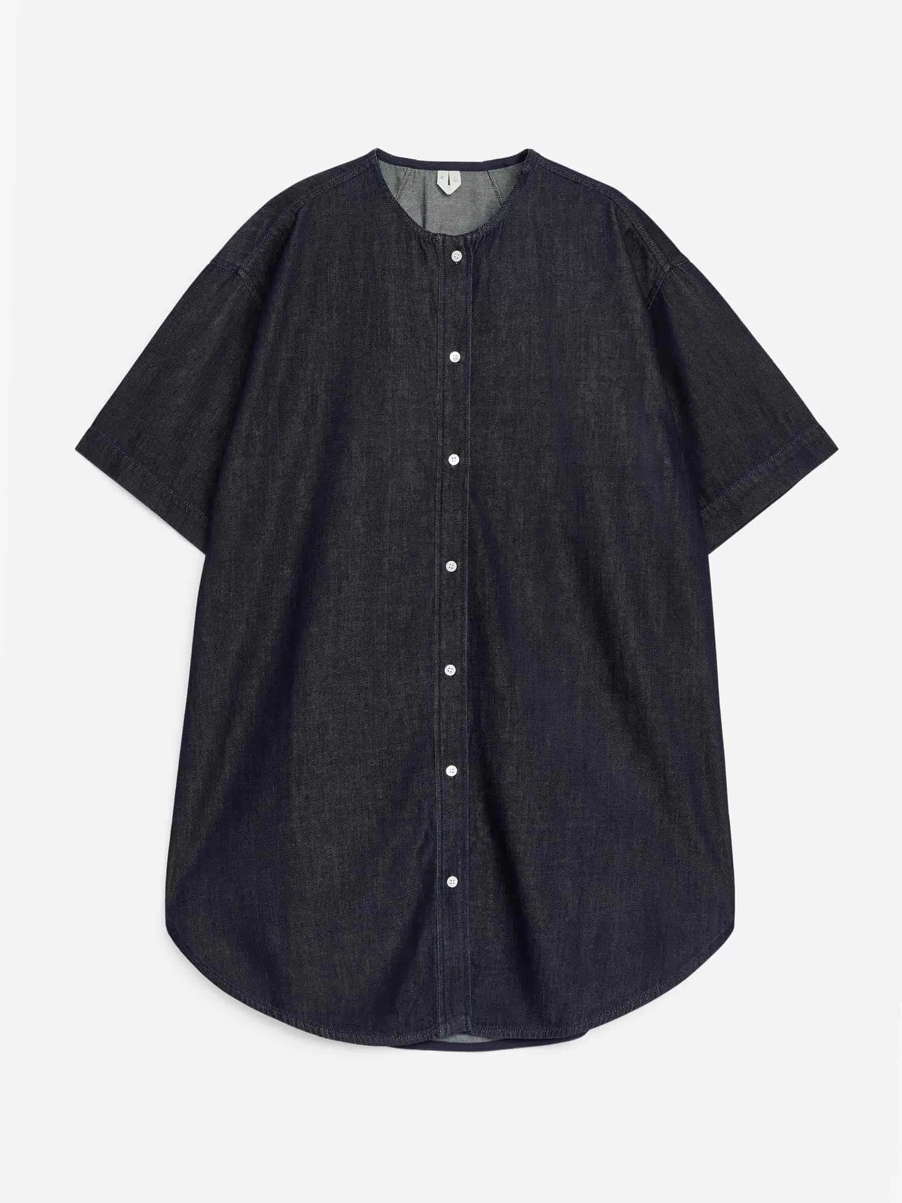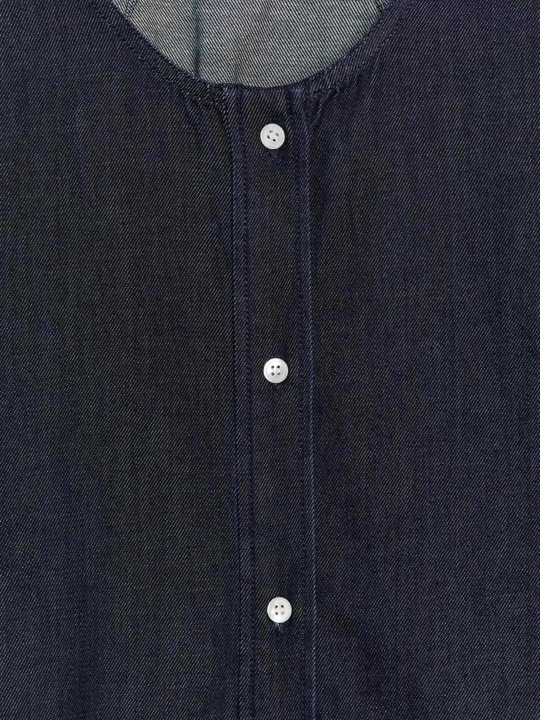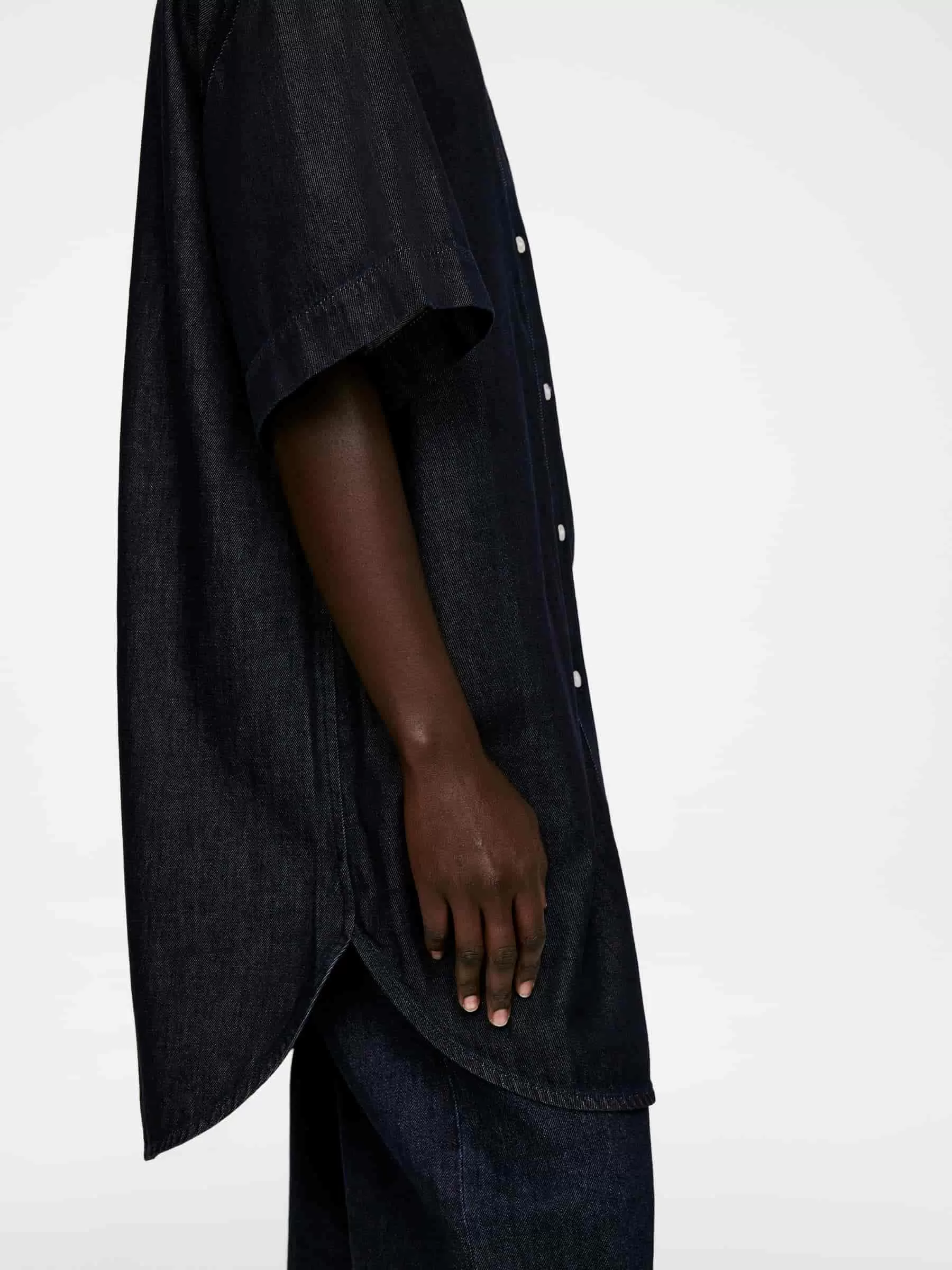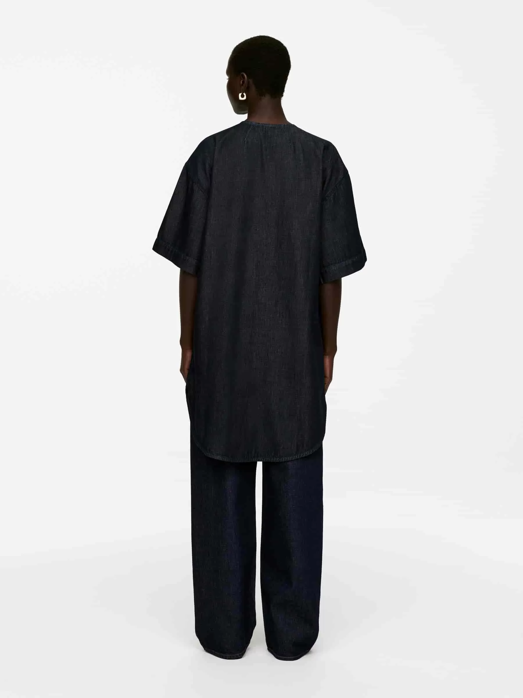 Short-sleeved tunic in a soft cotton-lyocell blend. This is a collarless style with button closure and a relaxed fit.