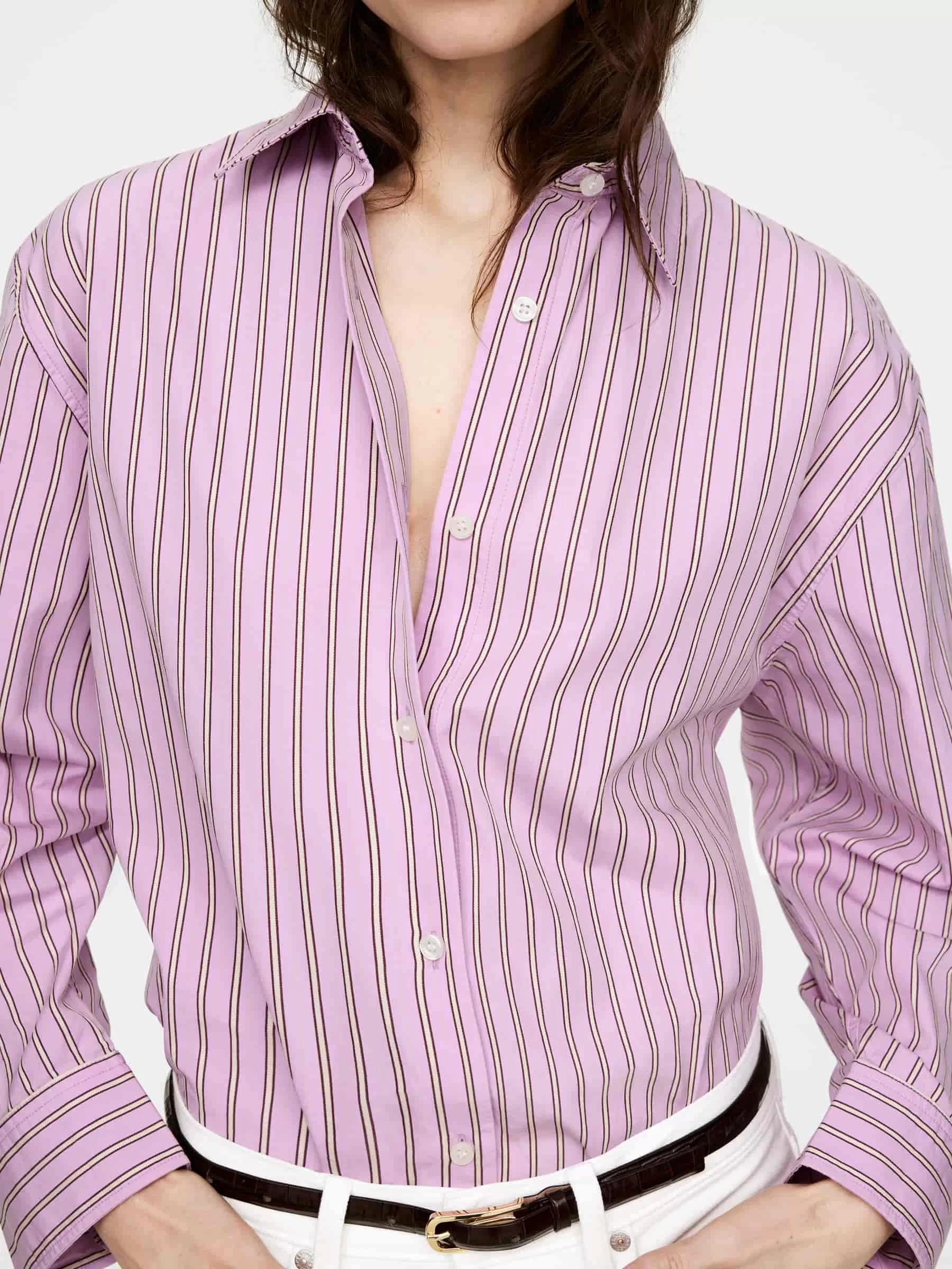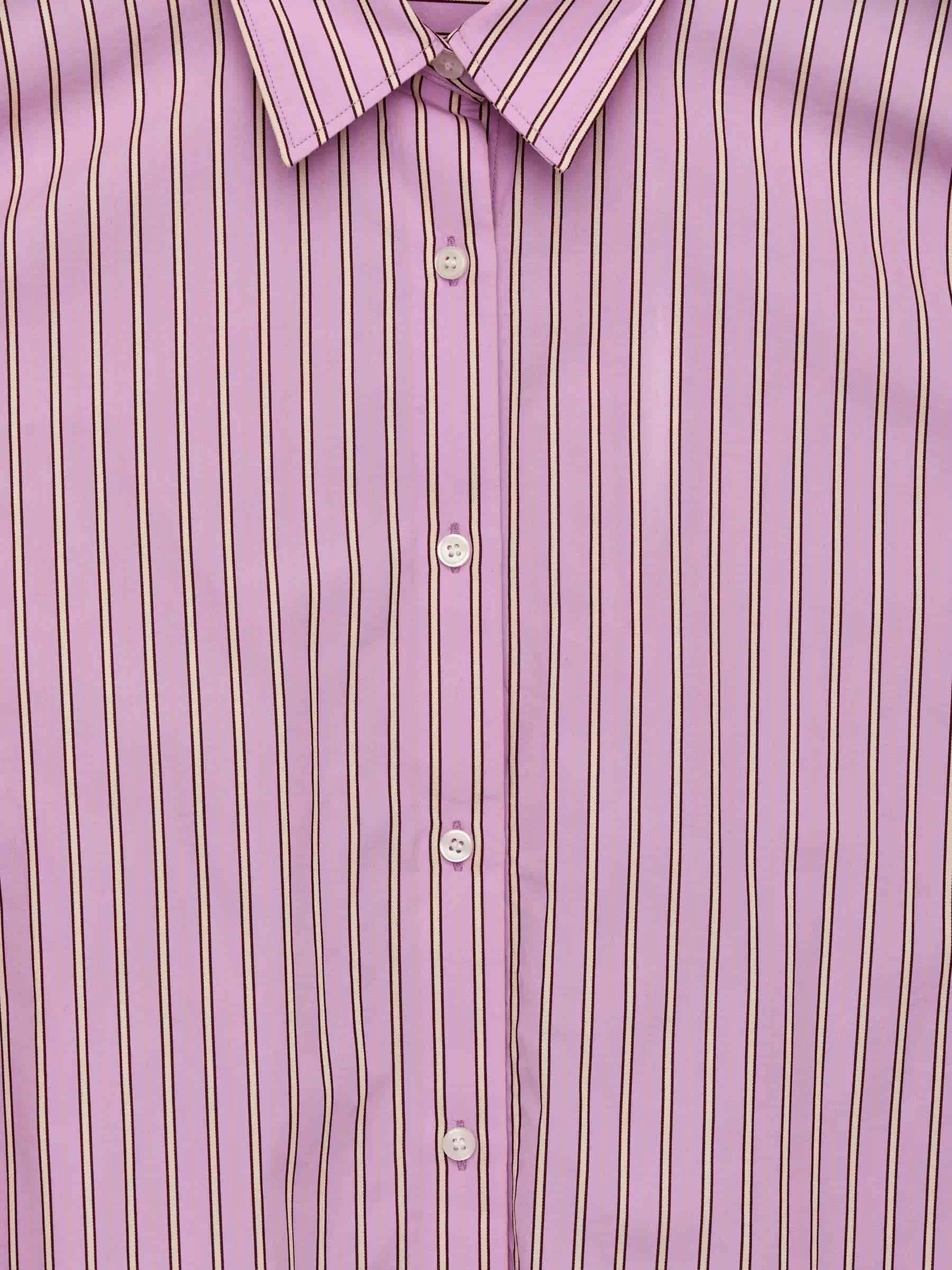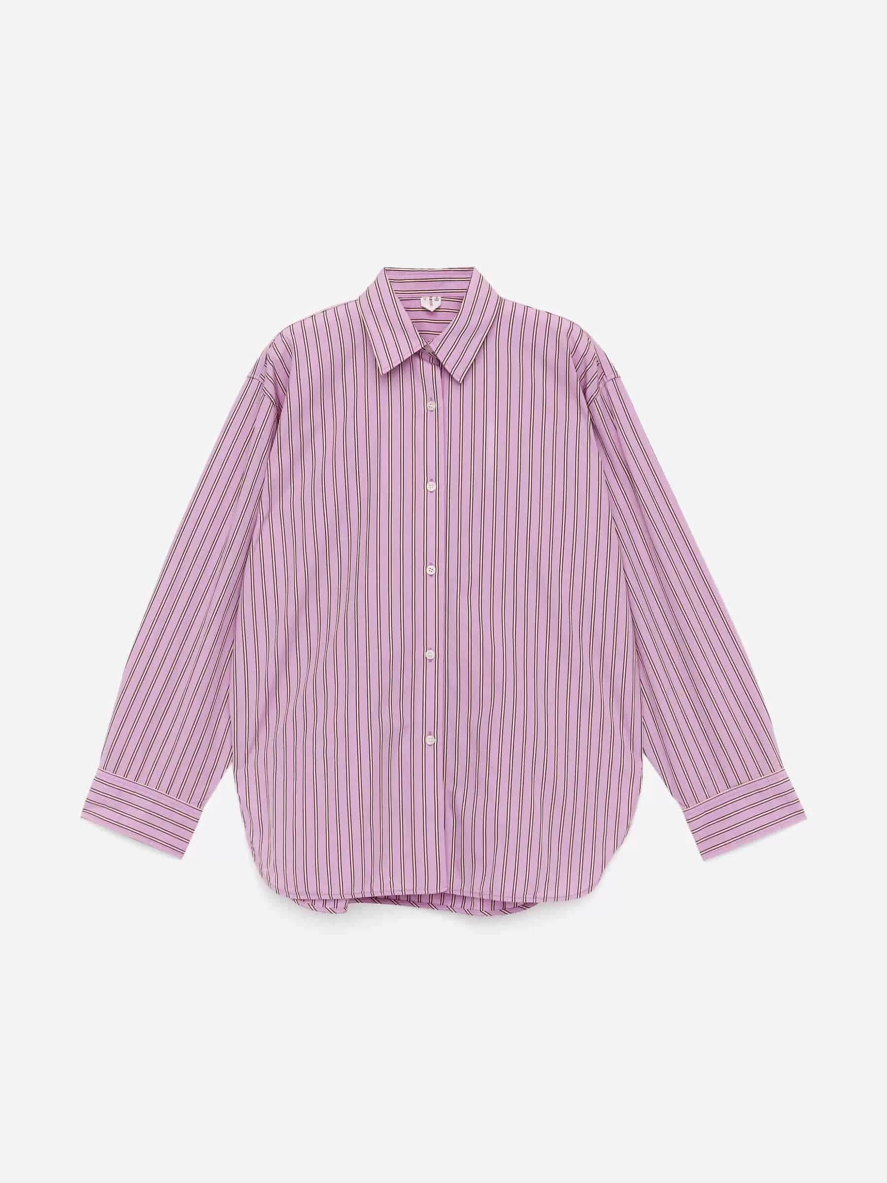Shirt sewn from a crisp poplin weave made of cotton. This shirt features a pattern of yarn-dyed stripes. A long-sleeve style cut for a relaxed silhouette with slightly dropped shoulders.
