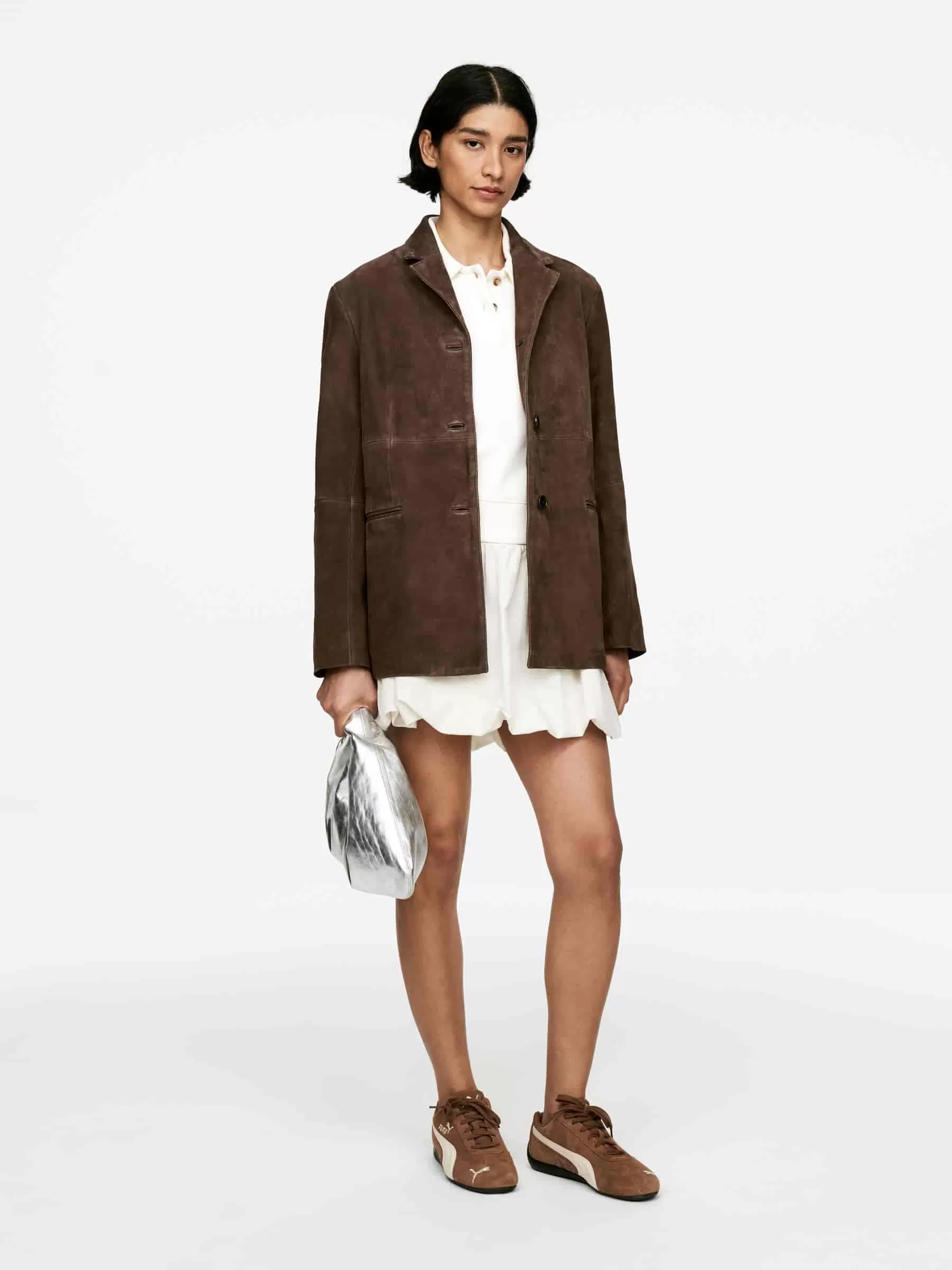 ARKE Women Relaxed Suede Blazer Dark Brown