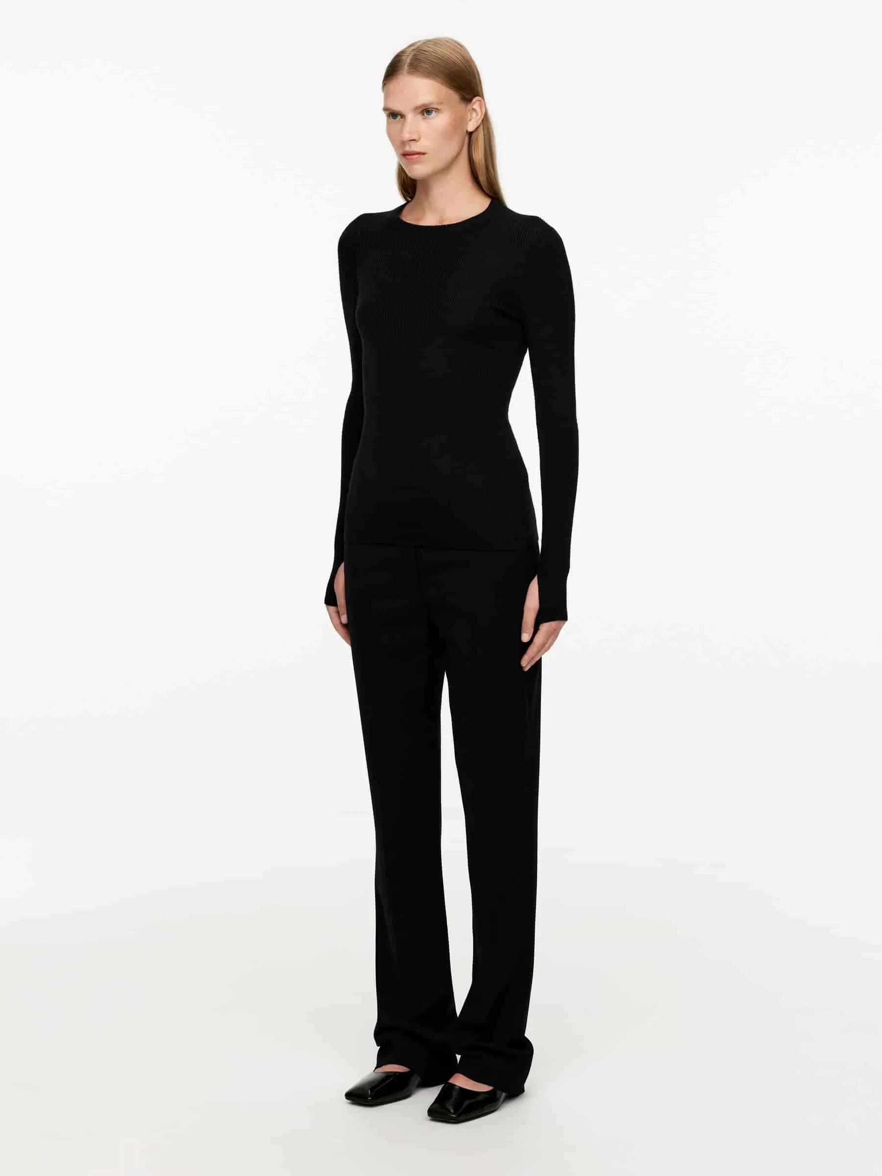 Merino top cut in a slim, slightly longer fit. The sleeves feature thumb openings for comfortable wearing. This top contains 100% RWS wool, certified by control union 862581. Products certified to the Responsible Wool Standard (RWS) contain wool fiber from farms independently certified to animal welfare and land management requirements.