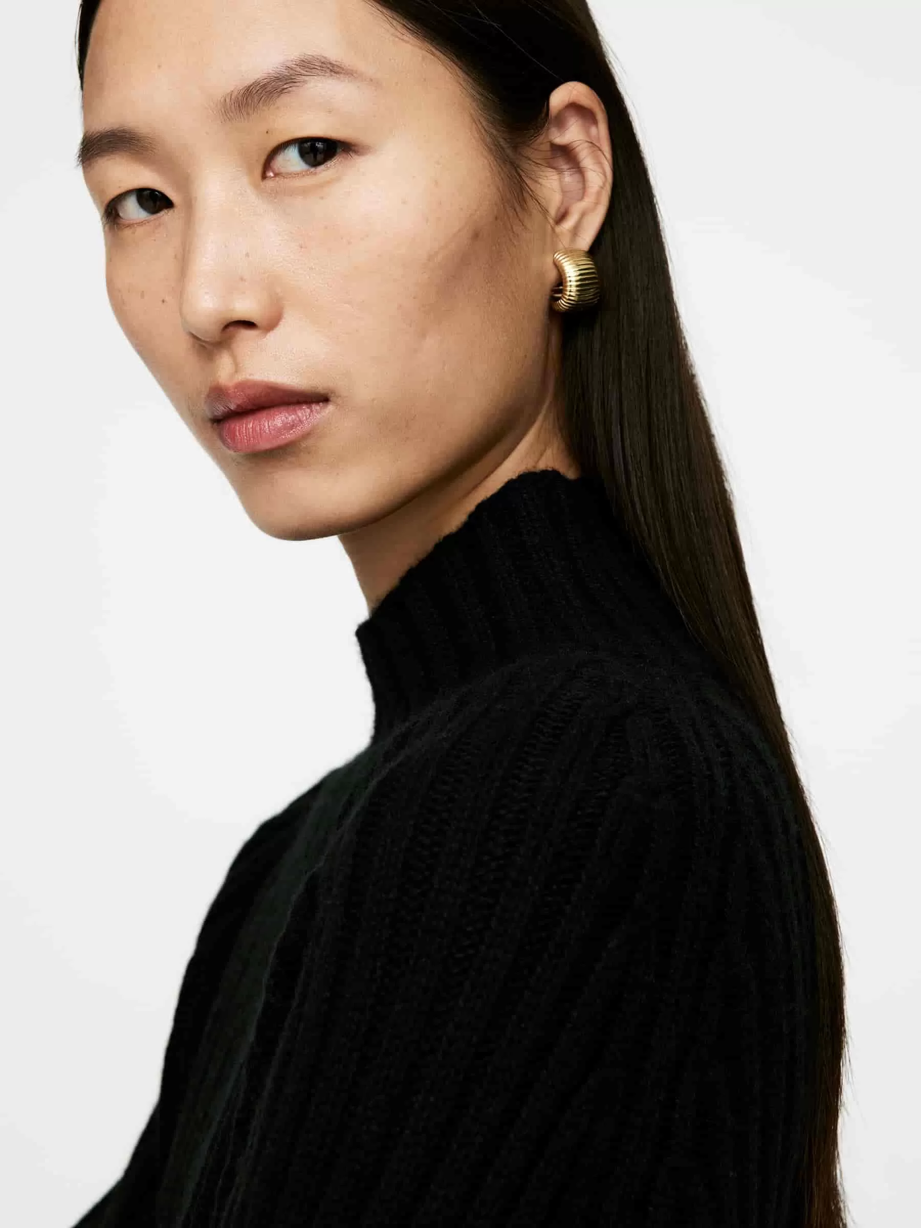 Jumper rib-knitted from wool. A slim-fitted style with a high neck and long sleeves. The jumper contains 100% RWS wool (TE-00047206). Products certified to the Responsible Wool Standard (RWS) contain wool fiber from farms independently certified to animal welfare and land management requirements.