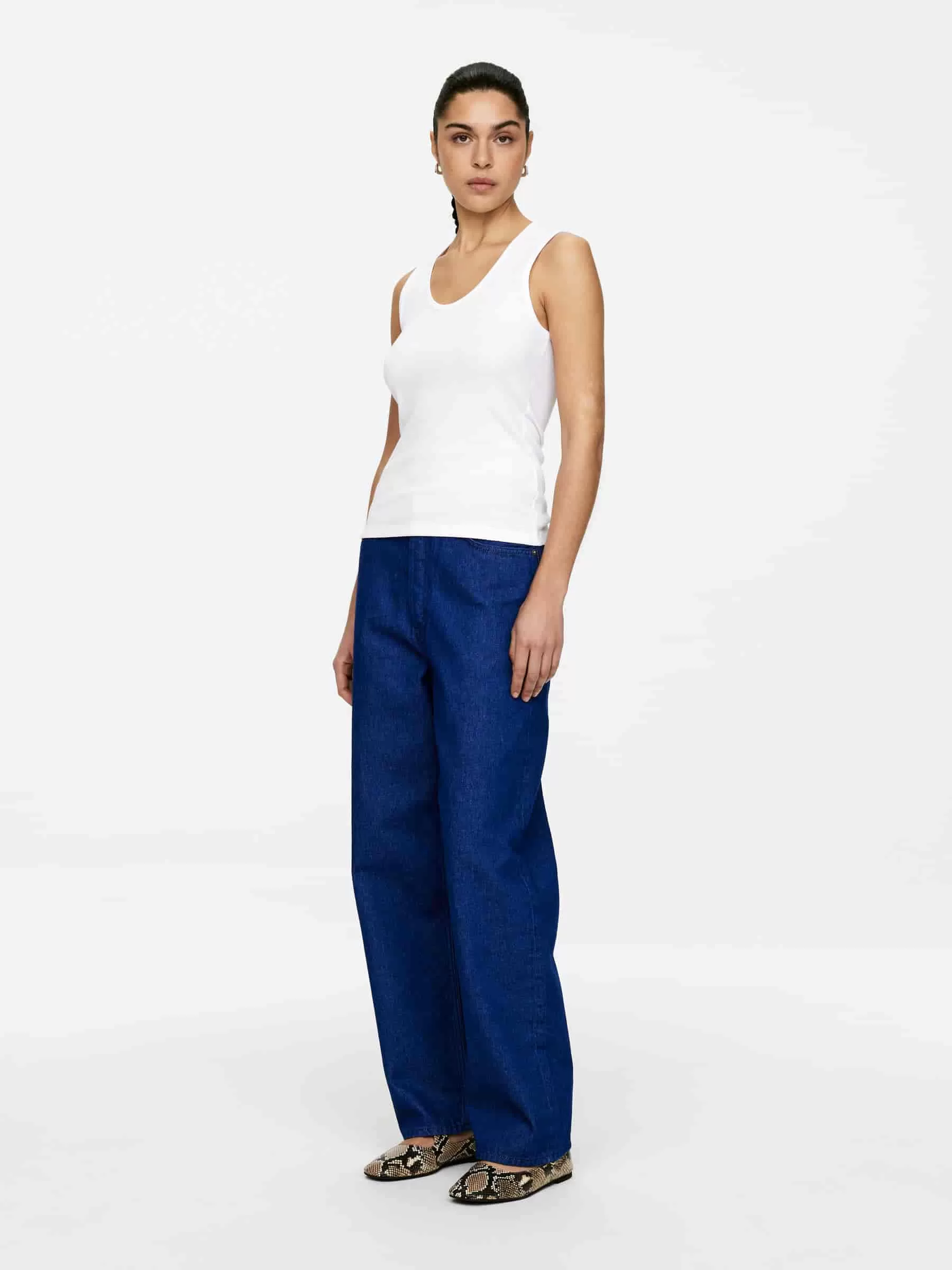 Tank top cut from a ribbed cotton jersey. A slim-fit style featuring a scooped neck.