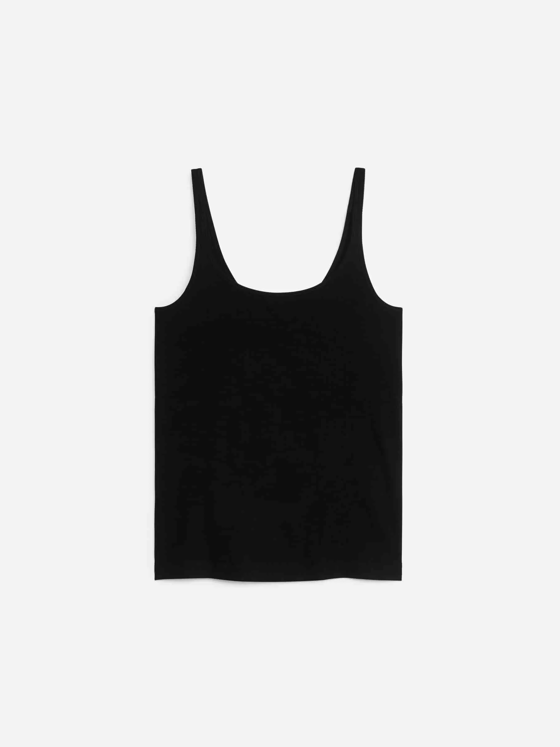 Tank top made from rib-knitted cotton jersey. Styled with a deep-cut neckline and slim straps.