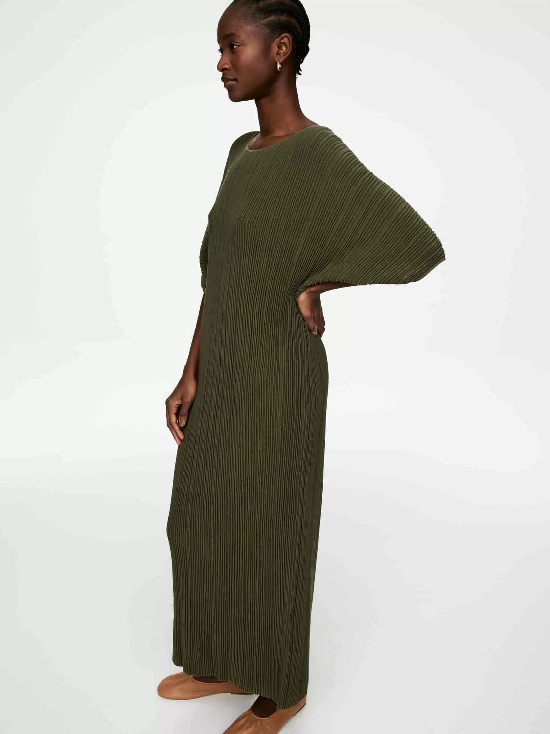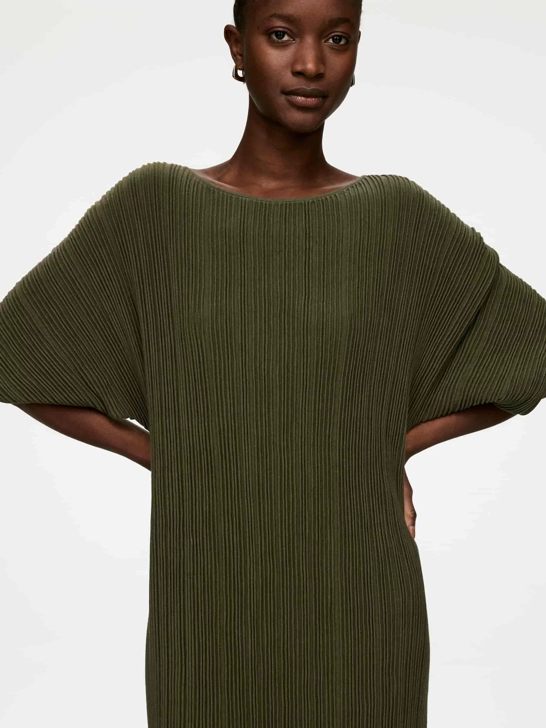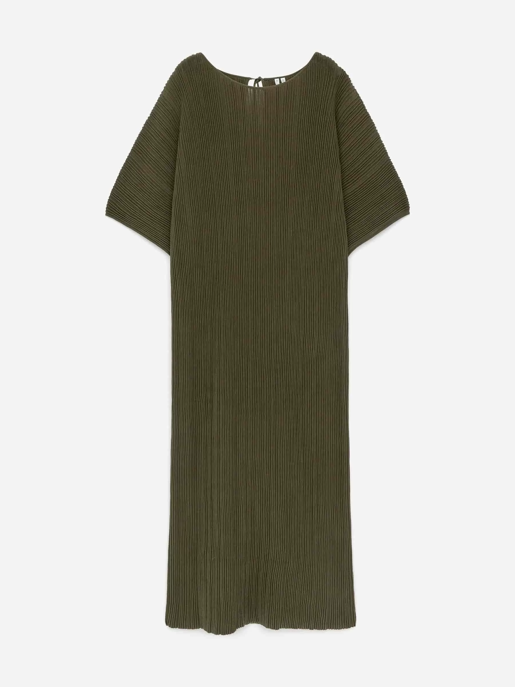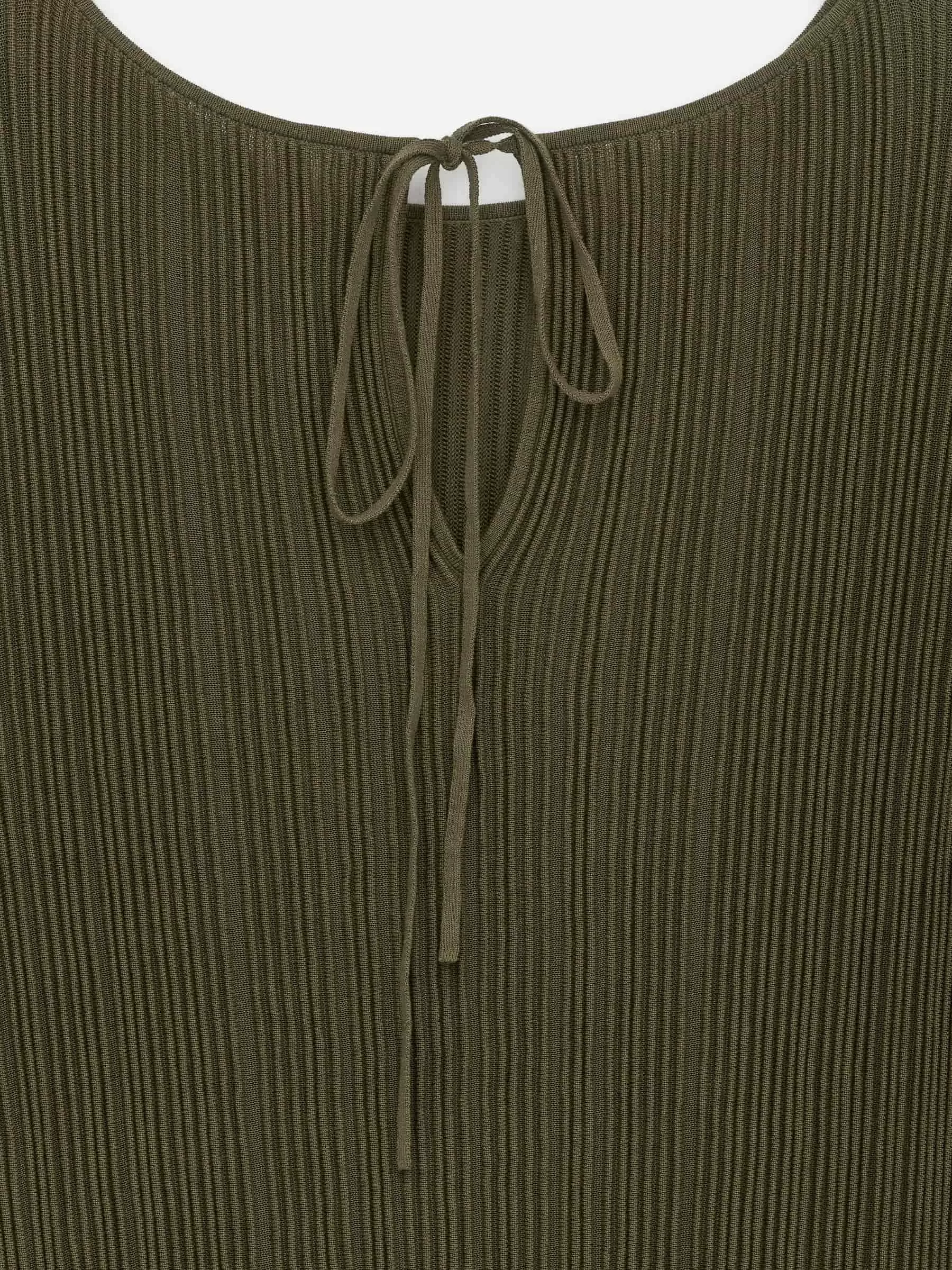 Knitted cotton dress with a ripple stitch finish. Tie band at back of neck. Loose fit.