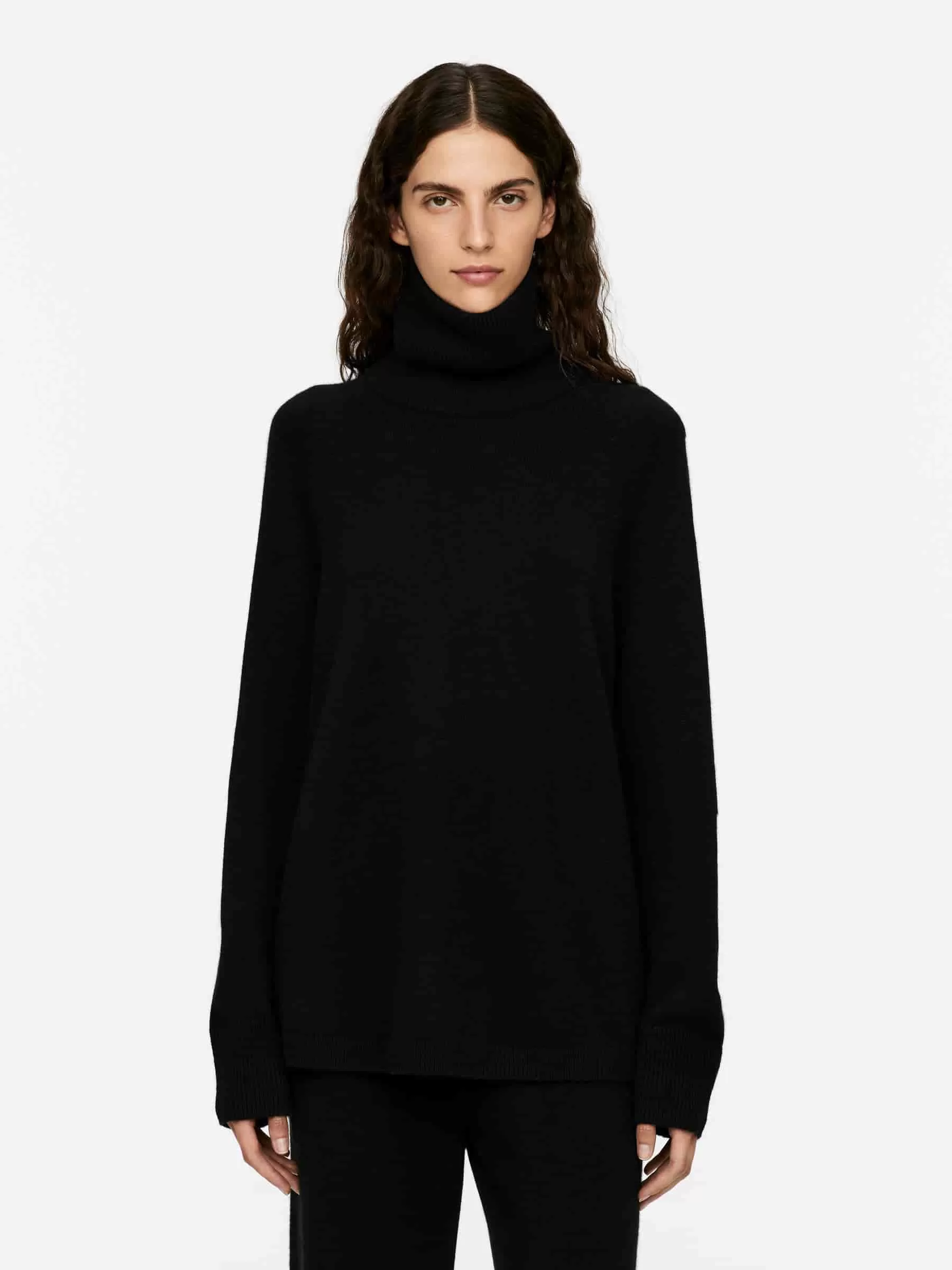 Roll-neck jumper crafted from cashmere and a portion of merino wool for added strength. Detailed with raglan sleeves and ribbed trims.