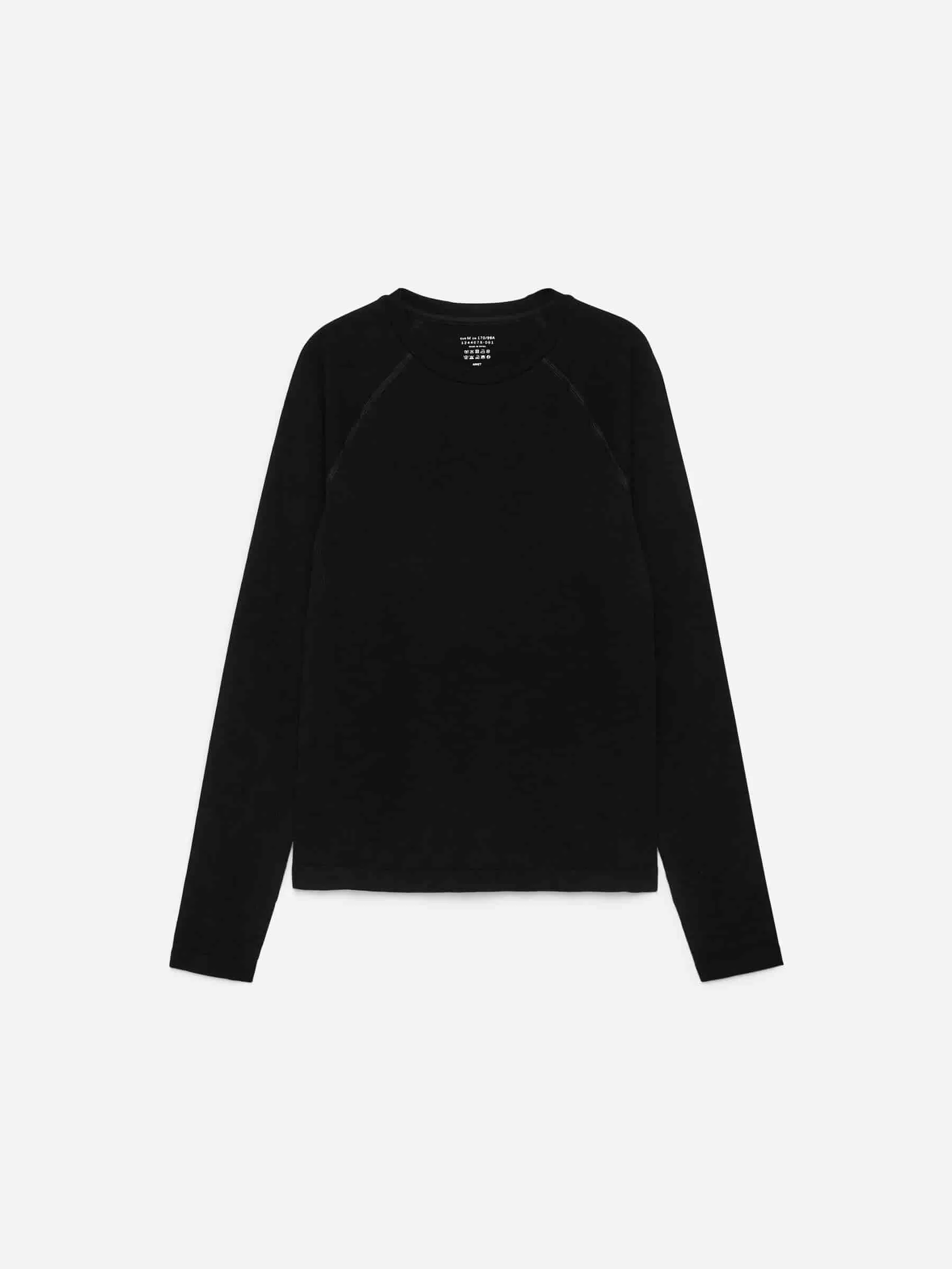 Seamless jersey top crafted from a stretch wool blend. A long-sleeved style with a crew-neck. Slim fit. The style contains 59% RWS wool (TE-00047206). Products certified to the Responsible Wool Standard (RWS) contain wool fiber from farms independently certified to animal welfare and land management requirements.