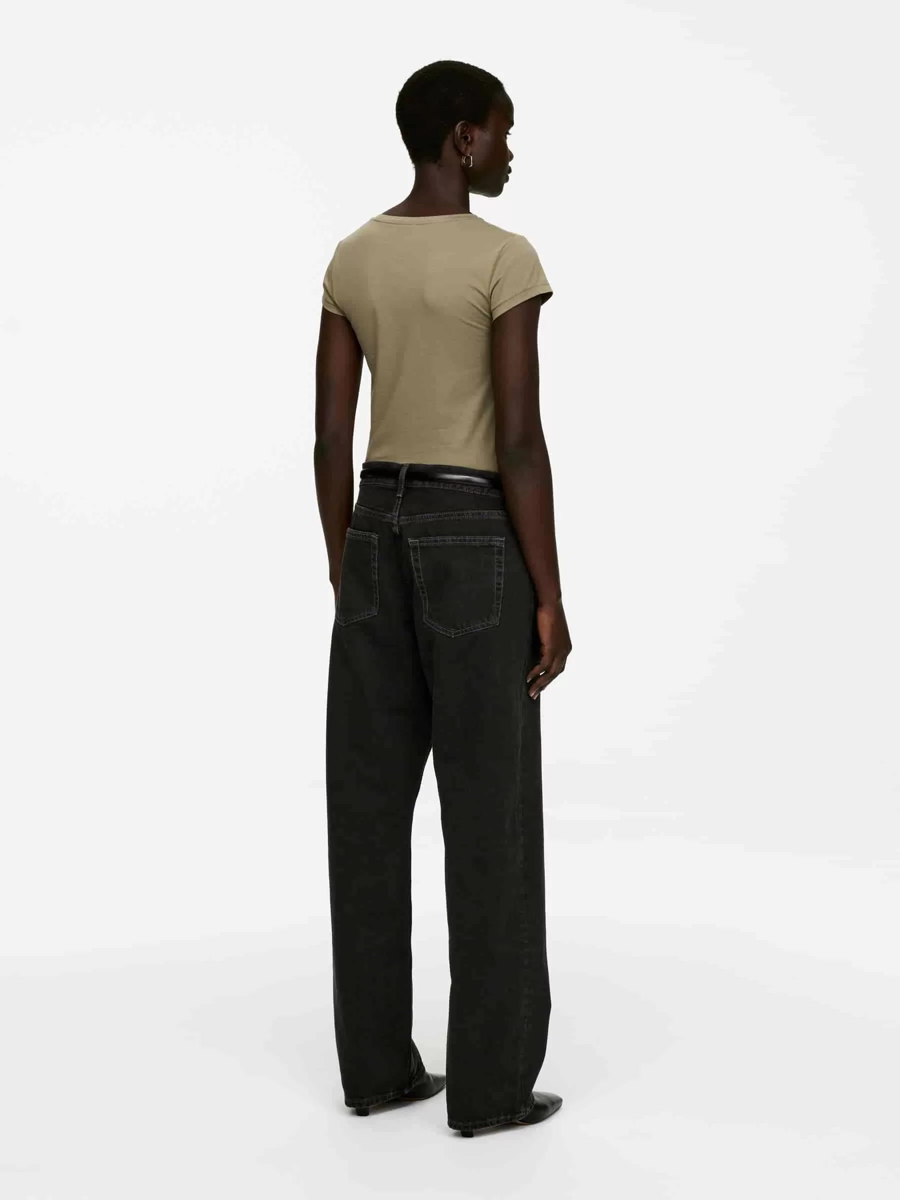 SHORE is cut from non-stretch denim and features a low-rise waist, relaxed fit and straight, loose legs. Button fly.