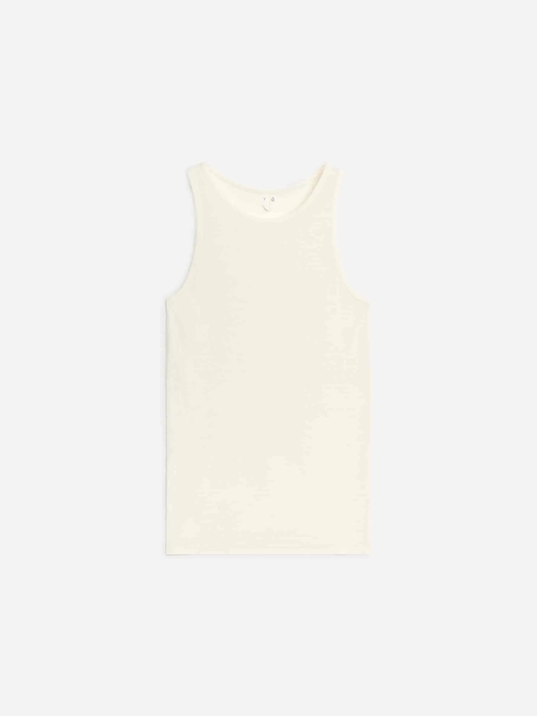 A slim-fitted tank top made of silk, which makes it soft to touch, lightweight and ideal as a base layer. Ribbed fabric that allows for natural stretch.