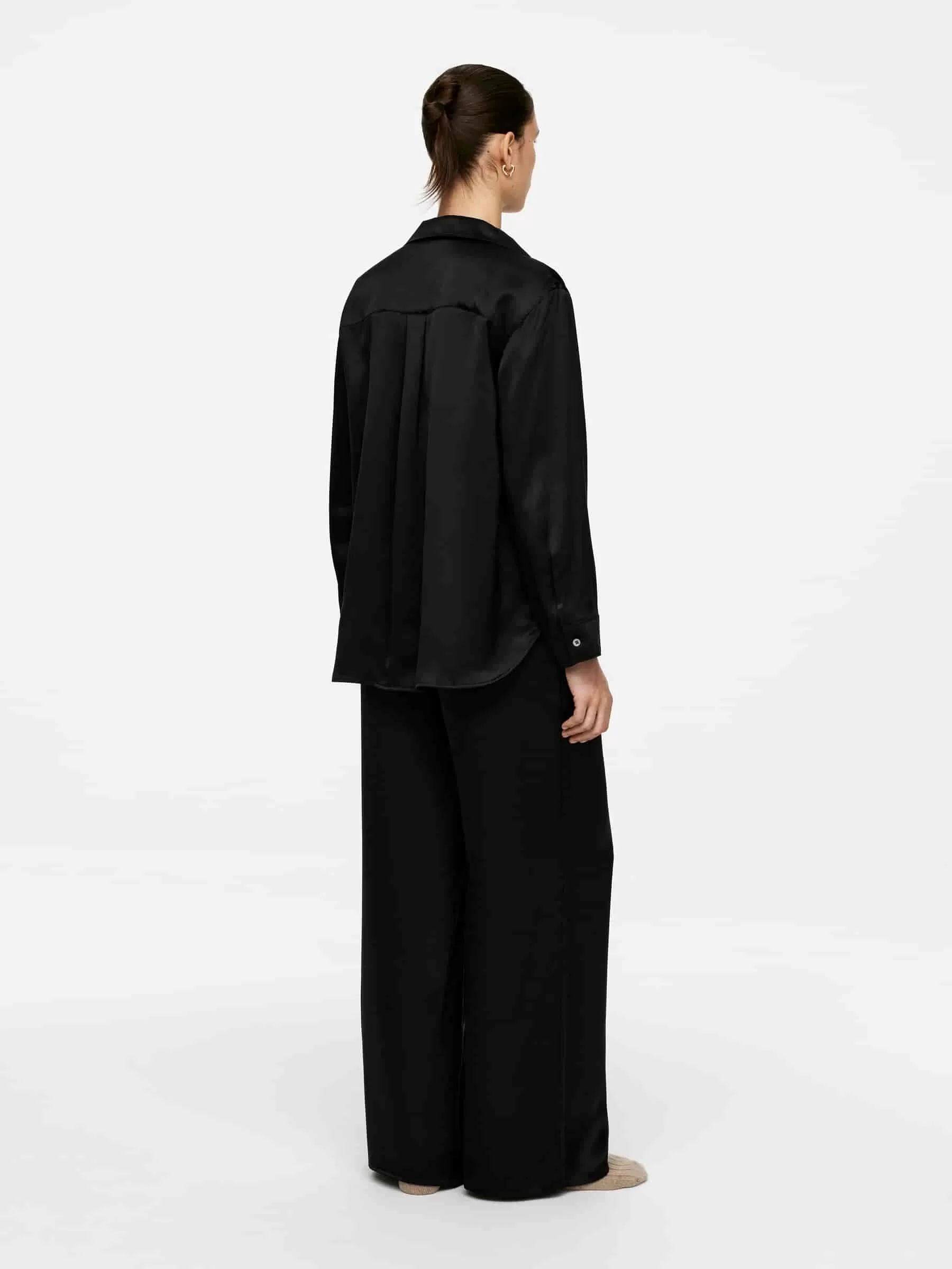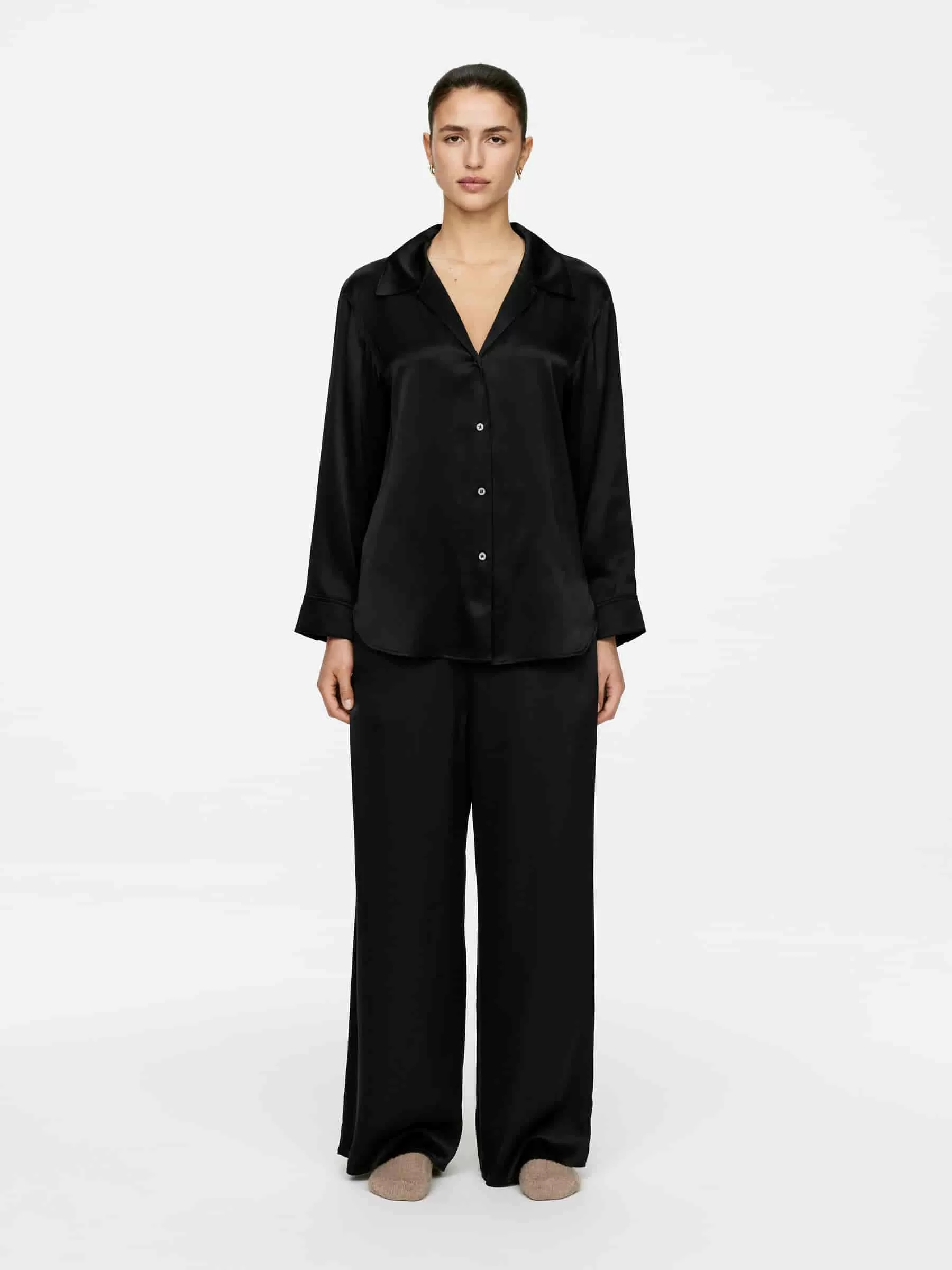 A smooth satin weave of mulberry silk gives a luxurious feel to these pyjama trousers. A high-waist style with wide legs for a relaxed, comfortable fit. Elasticated waist and pockets at side seams.