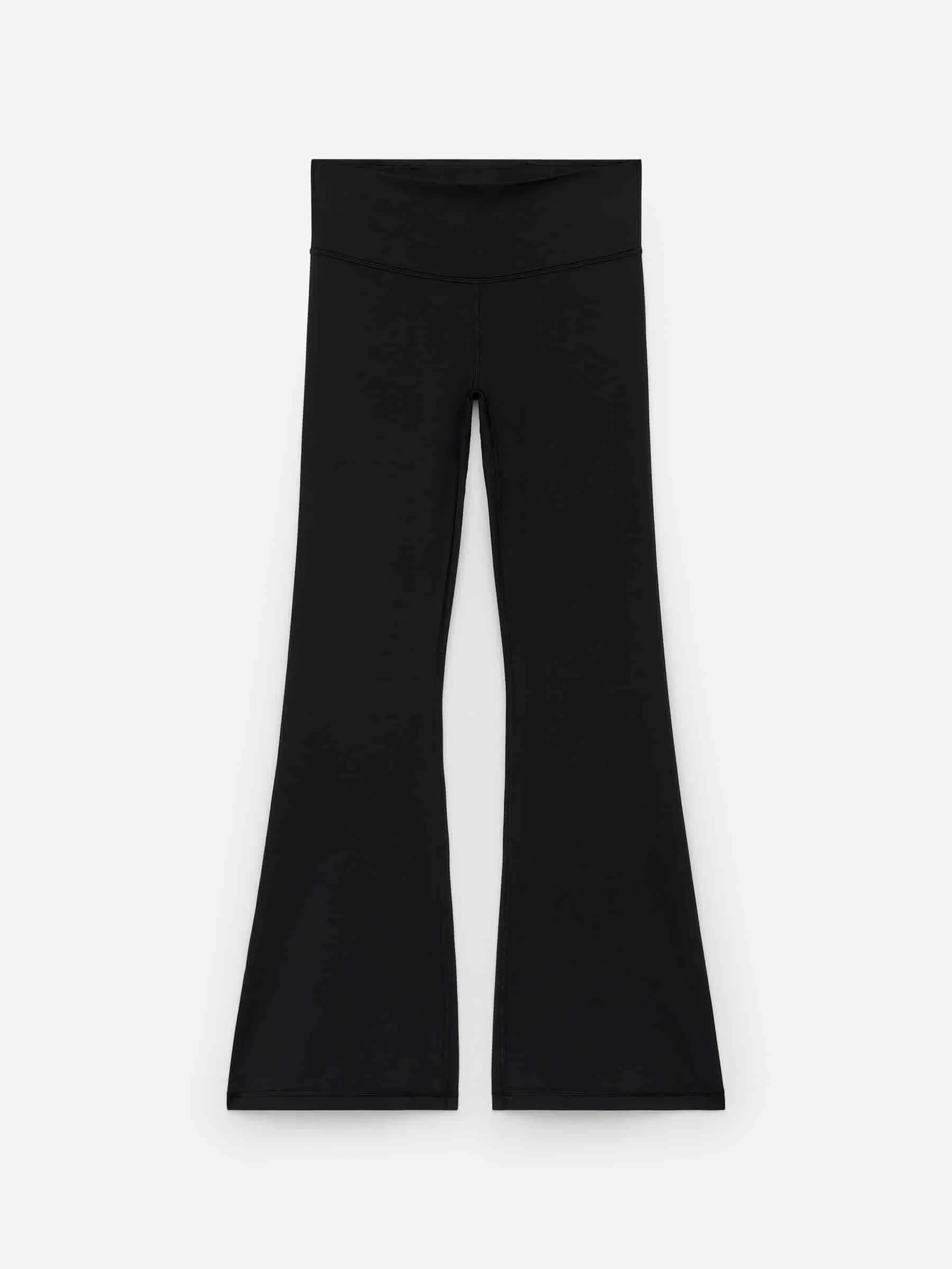 Slim-fitted tights with flared legs made from a soft and stretchy breathable jersey fabric. A high waist, full length style with light support. Styled with a wide tubular waistband and a hidden inner pocket.