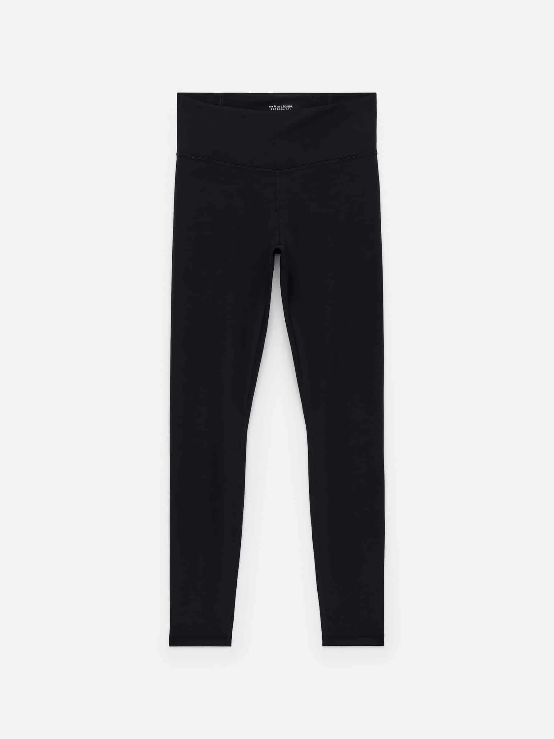 Slim-fitted tights made from a soft and stretchy breathable jersey fabric. A high waist, full length style with light support. Styled with a wide tubular waistband and a hidden inner pocket.