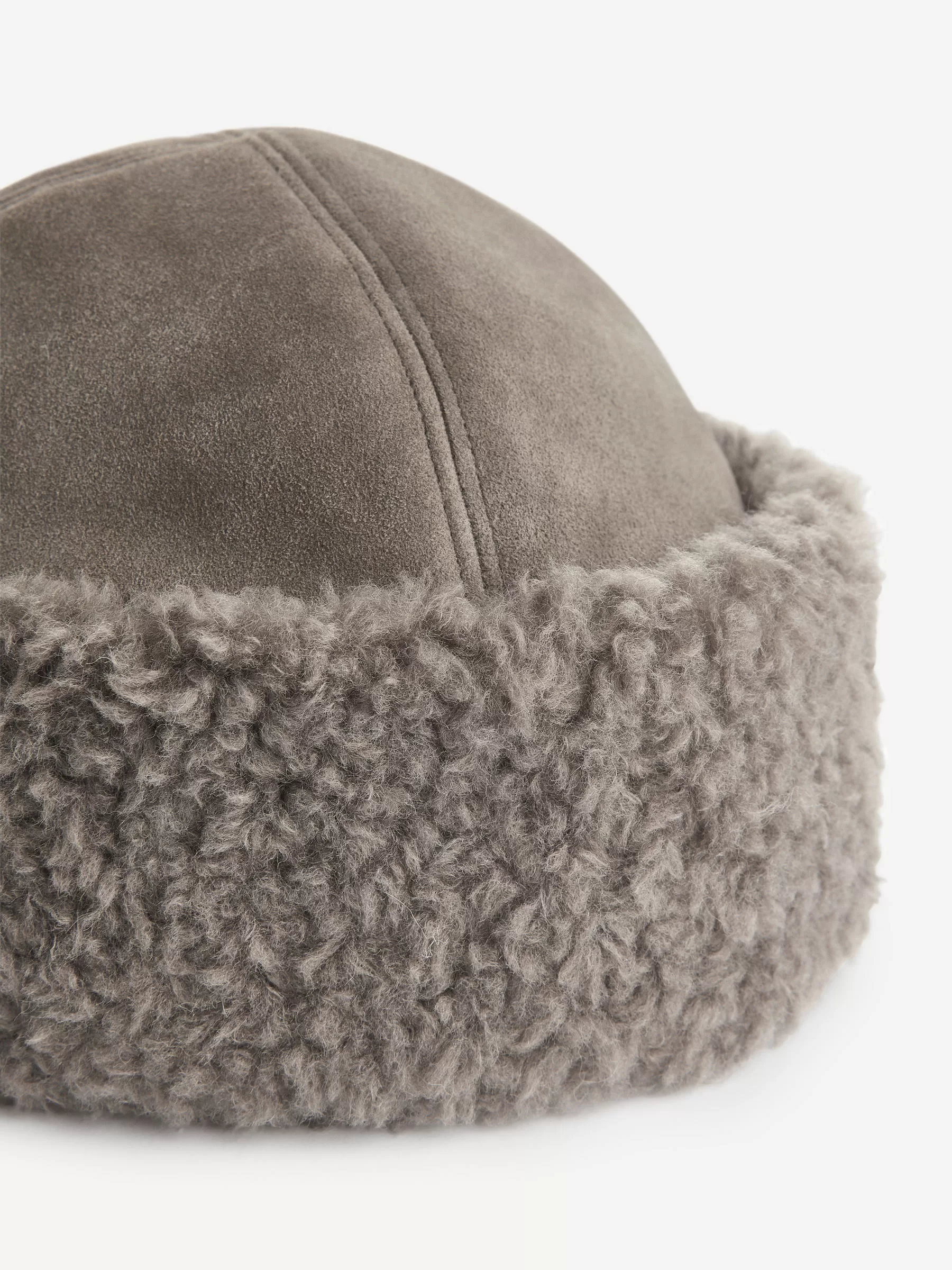 Lined winter hat with a four-panelled crown in suede. Styled with a double-layer brim in pile.