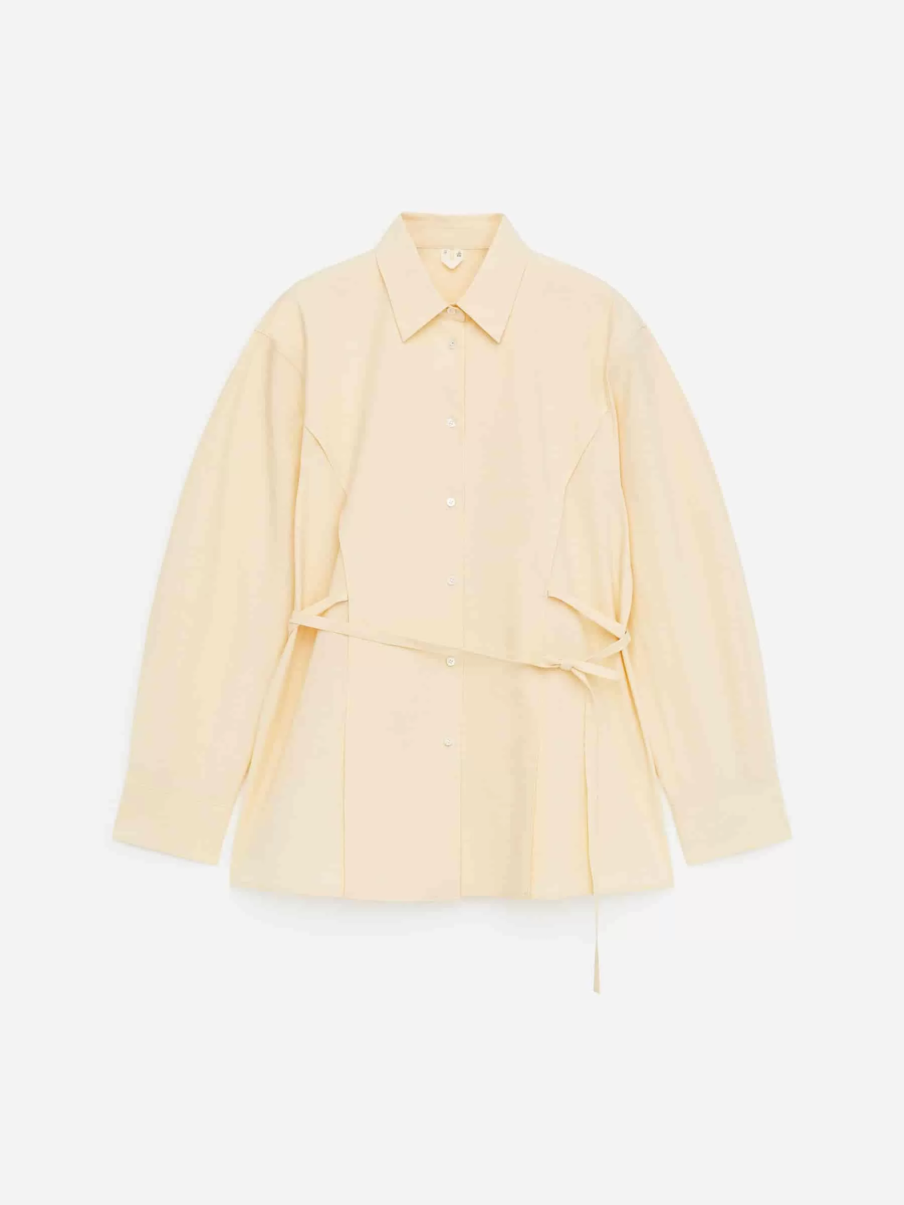 ARKE Women Tie-Belt Cotton Blouse Dusty Yellow