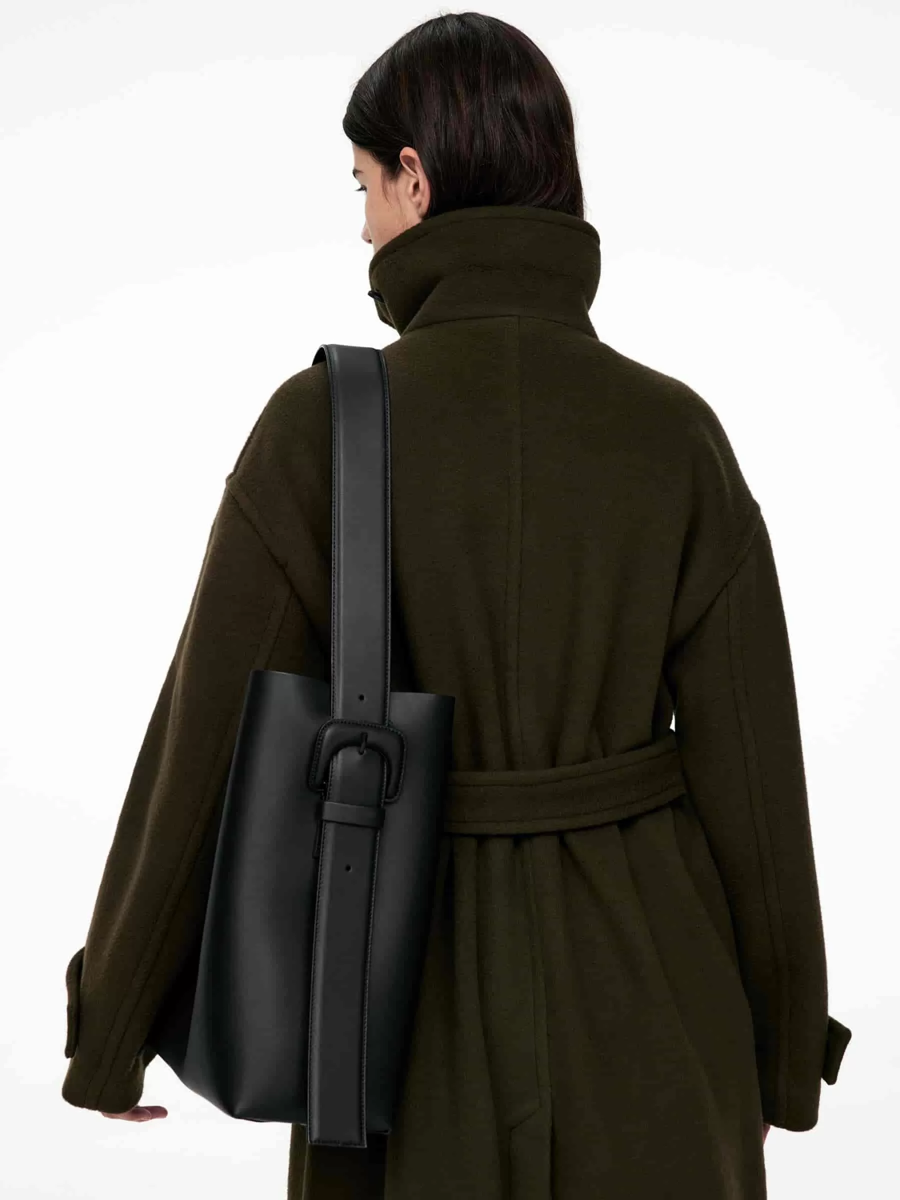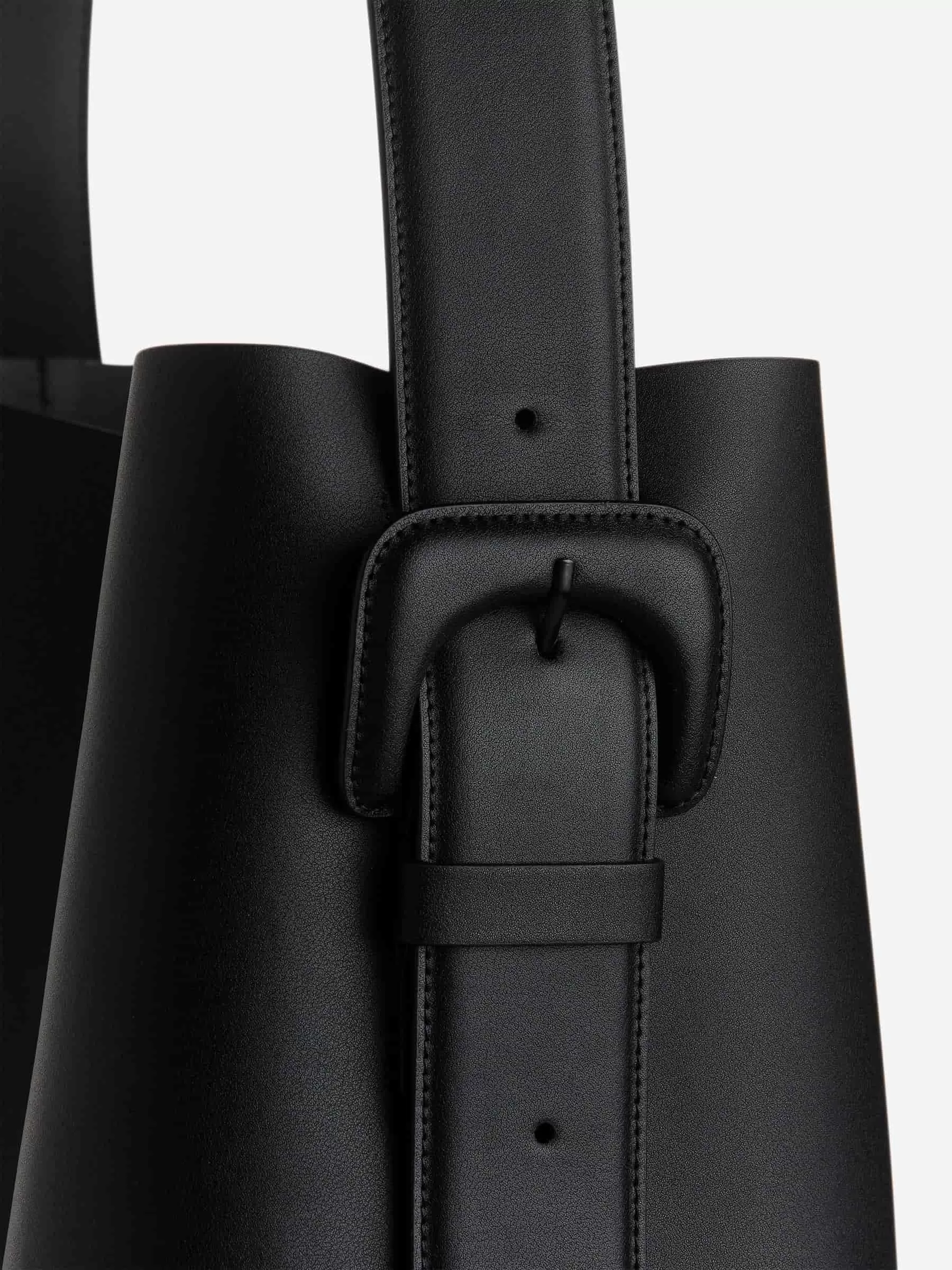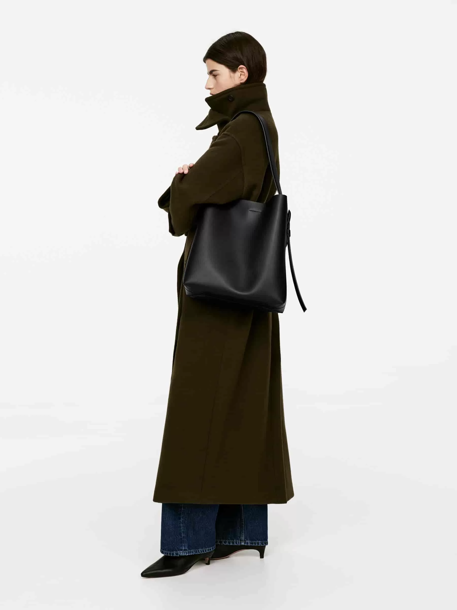 Tote bag with a semi-rigid feel and spacious enough to fit a laptop. Styled with an adjustable, five centimeter wide shoulder strap and magnetic closure. Inner compartment with zip closure. Dimensions 35 cm x 32 cm x 13 cm.