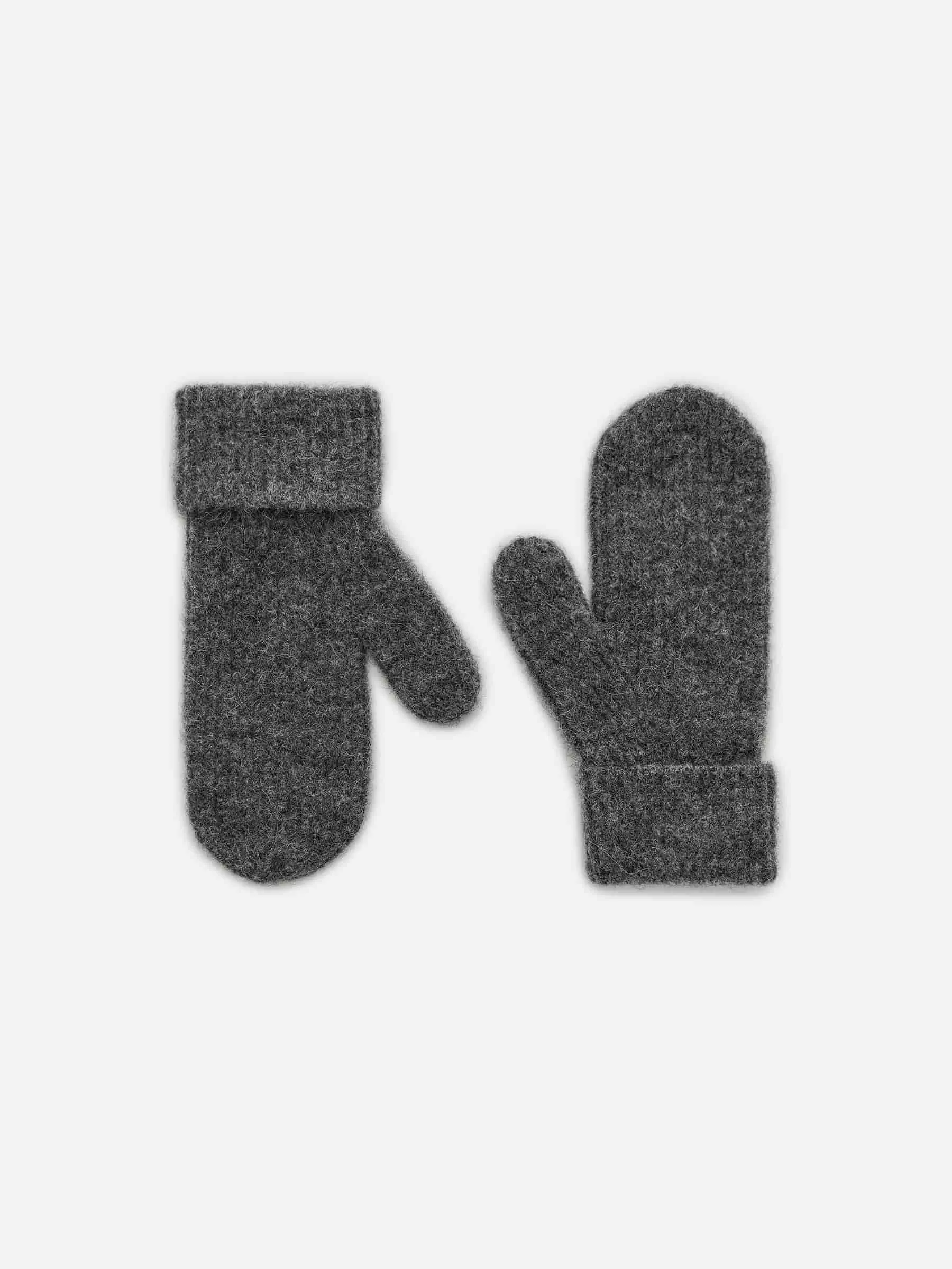 Mittens in a hairy quality knitted from a blend of alpaca and wool. Folded cuffs. This style contains 28% RAS Alpaca and 30% RWS wool (TE-00047206). Products certified to the Responsible Wool Standard (RWS) and the Responsible Alpaca Standard (RAS) contain wool and alpaca fiber from farms independently certified to animal welfare and land management requirements.