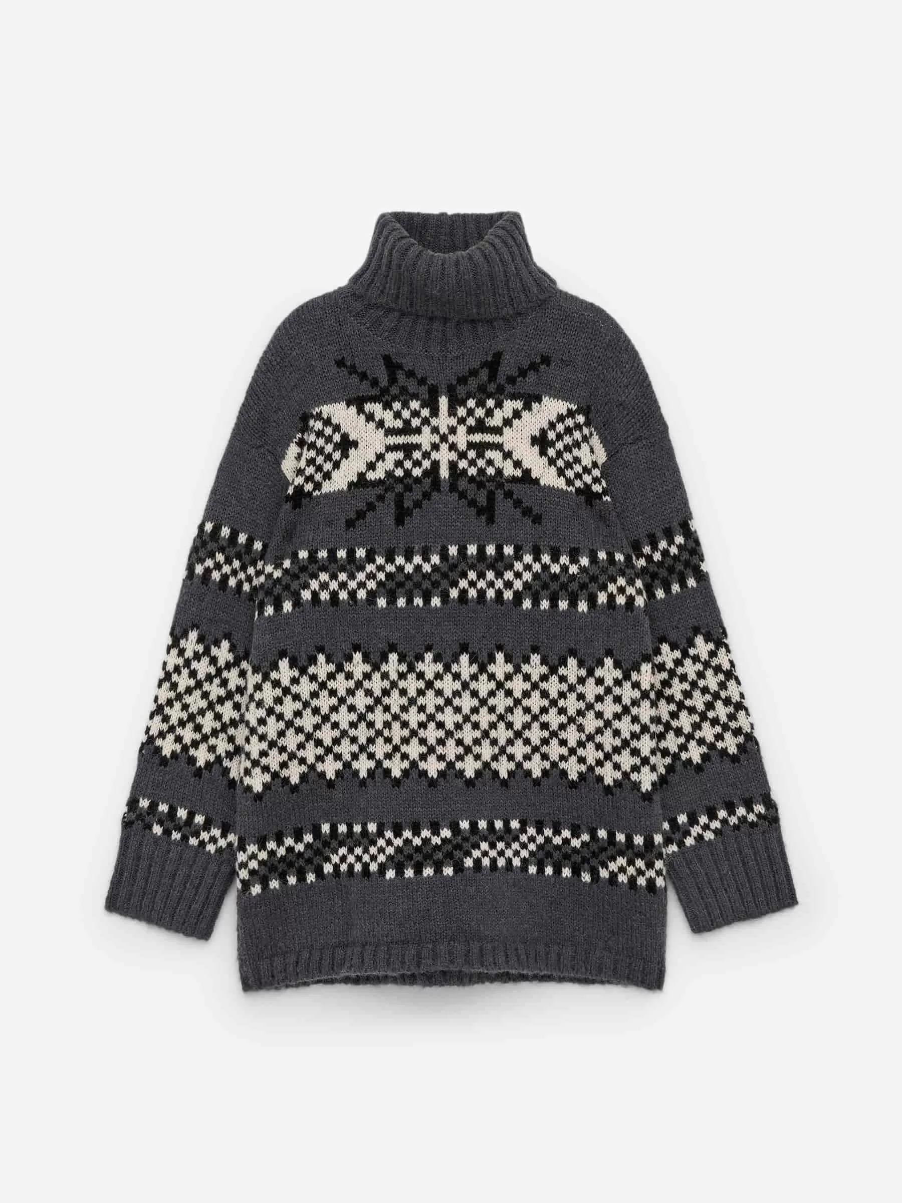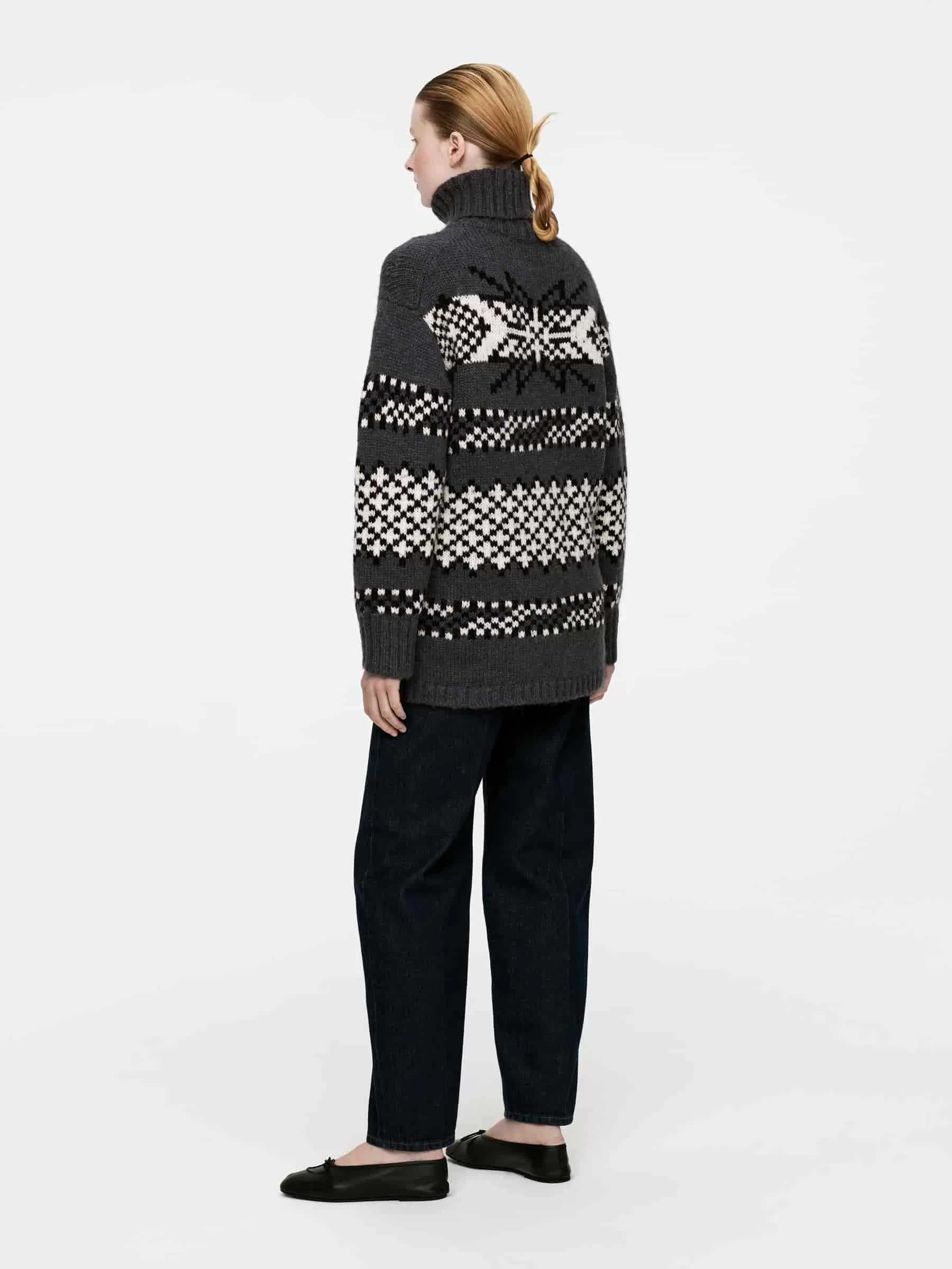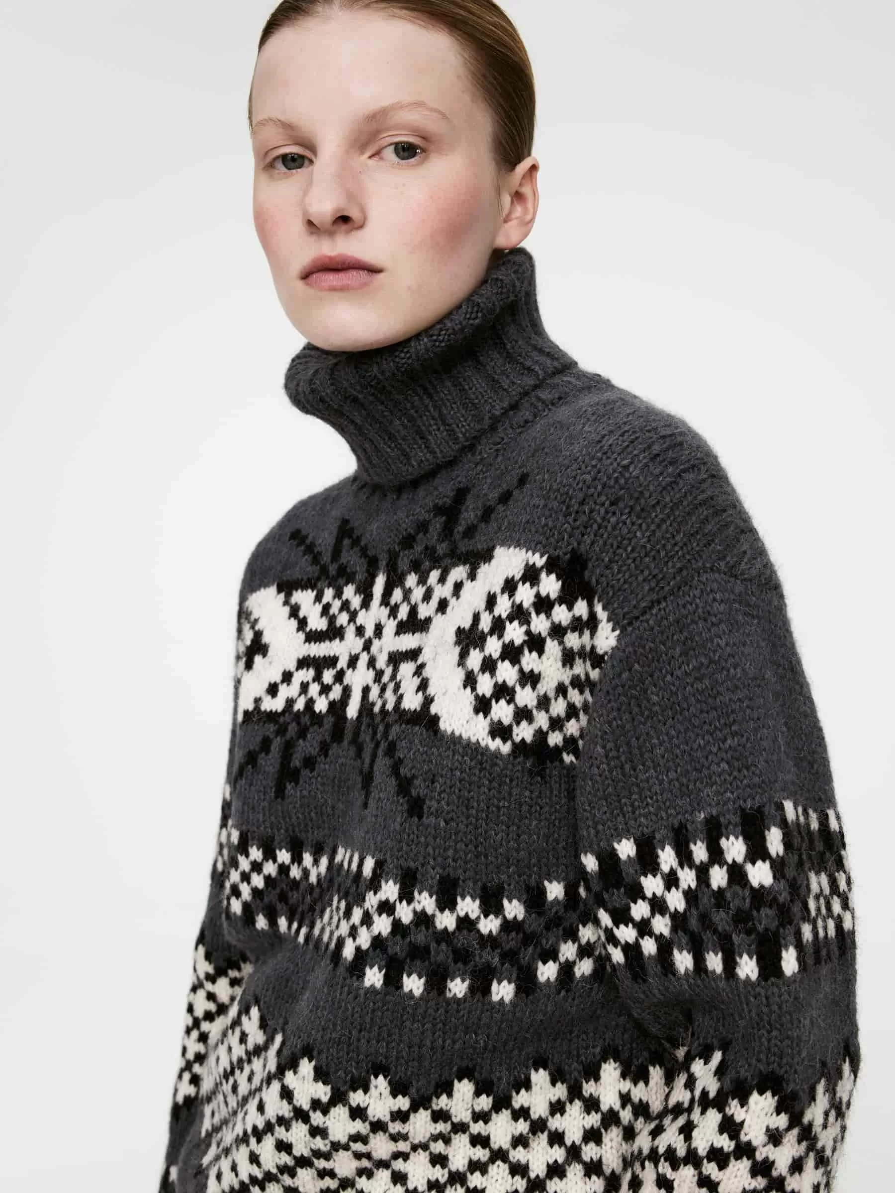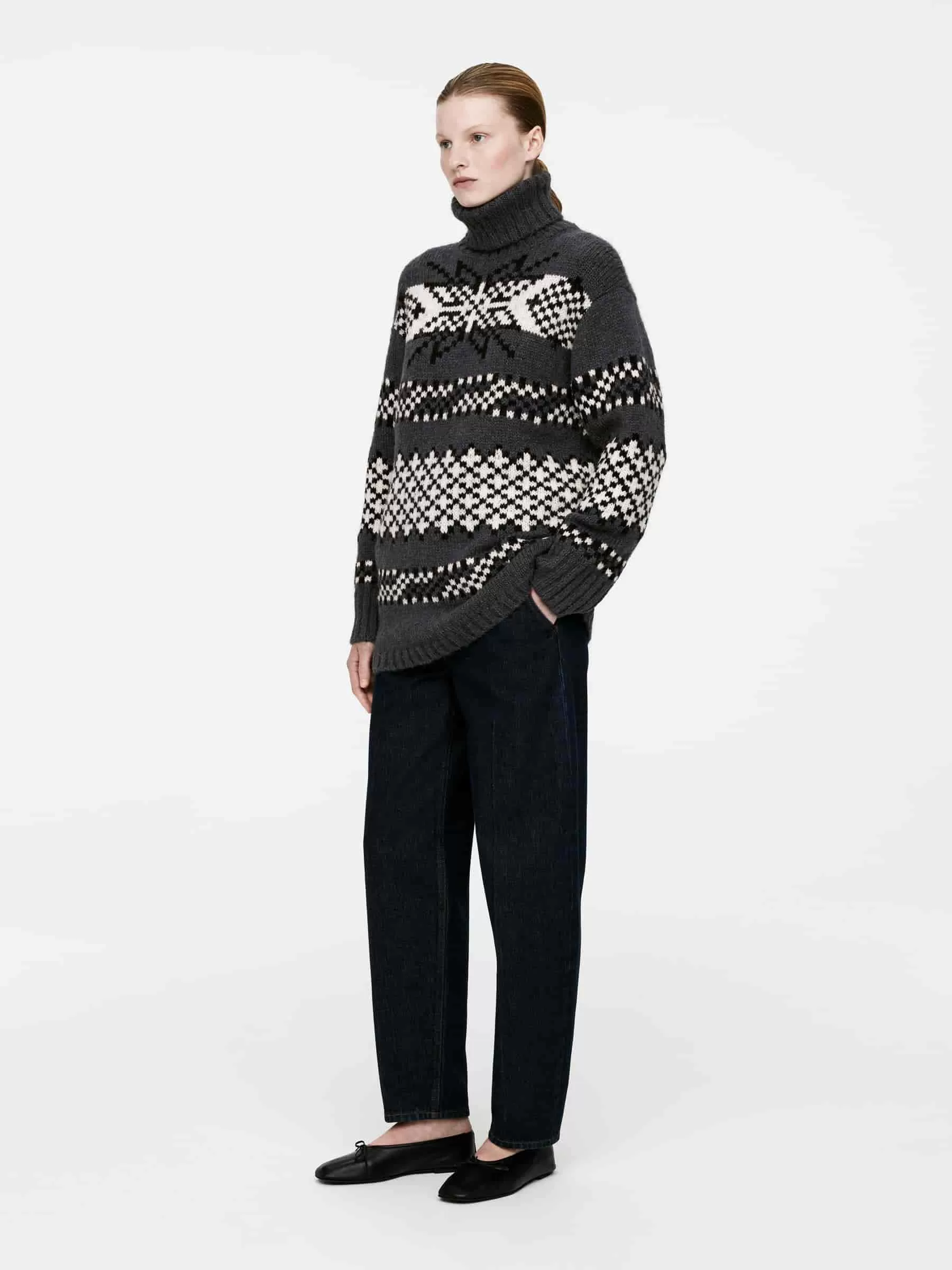 Jacquard-knit jumper crafted from a blend of wool and alpaca. Styled with a roll-neck and ribbed trims. Relaxed fit. This style contains 44% RAS Alpaca and 56% RWS wool (TE-00047206). Products certified to the Responsible Wool Standard (RWS) and the Responsible Alpaca Standard (RAS) contain wool and alpaca fiber from farms independently certified to animal welfare and land management requirements.