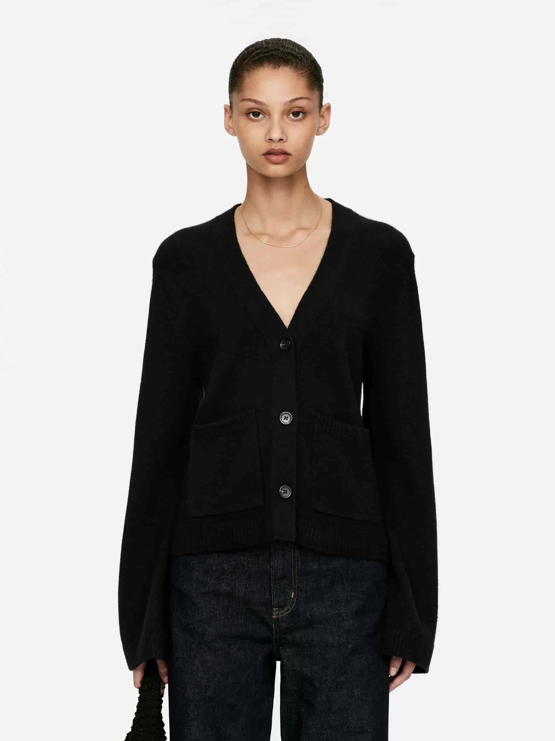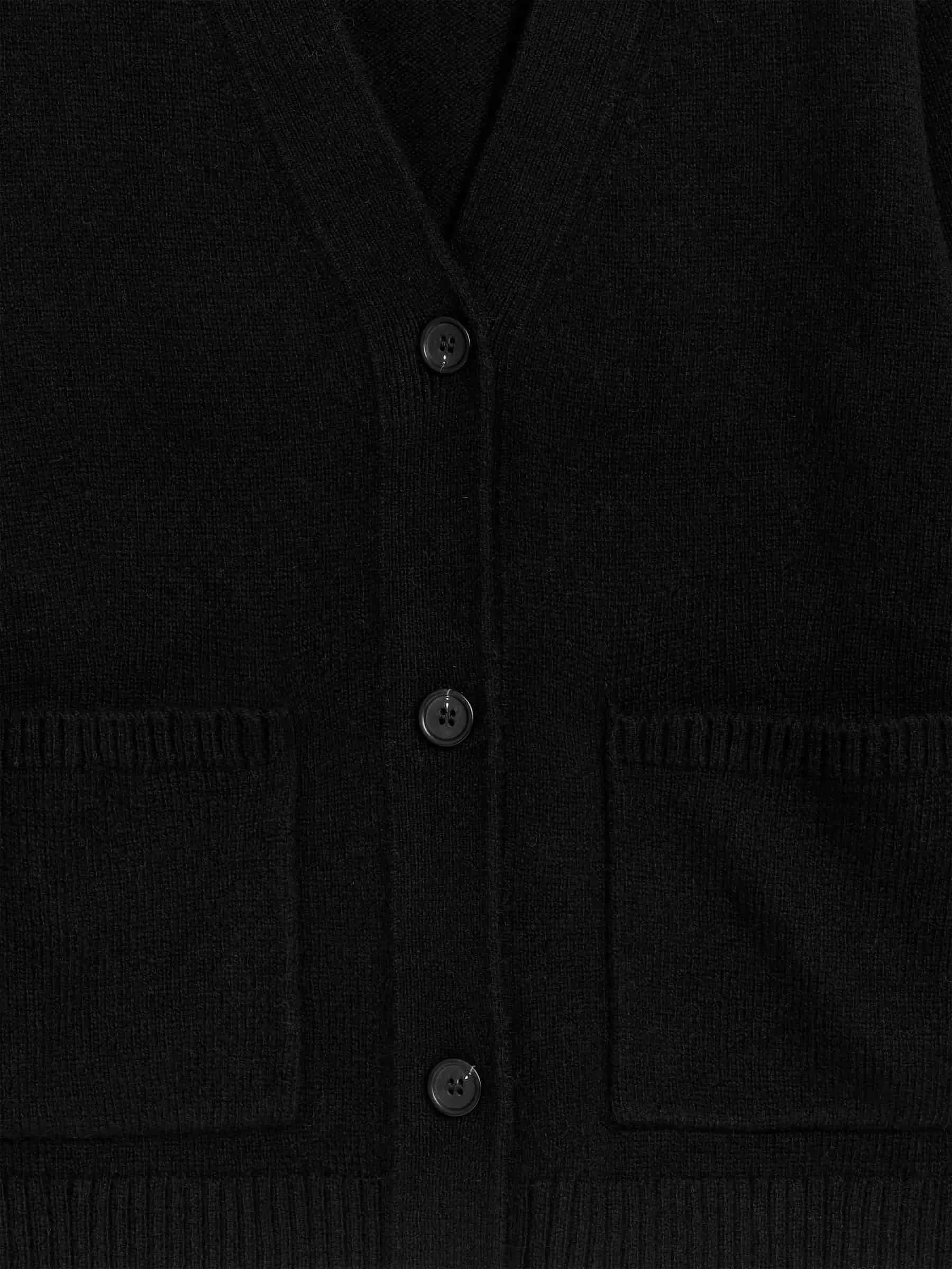 Long-sleeve cardigan with a V-neck and three-button closure. Styled with front pockets. Slim fit. The cardigan contains 100% RWS wool (TE-00047206). Products certified to the Responsible Wool Standard (RWS) contain wool fiber from farms independently certified to animal welfare and land management requirements.