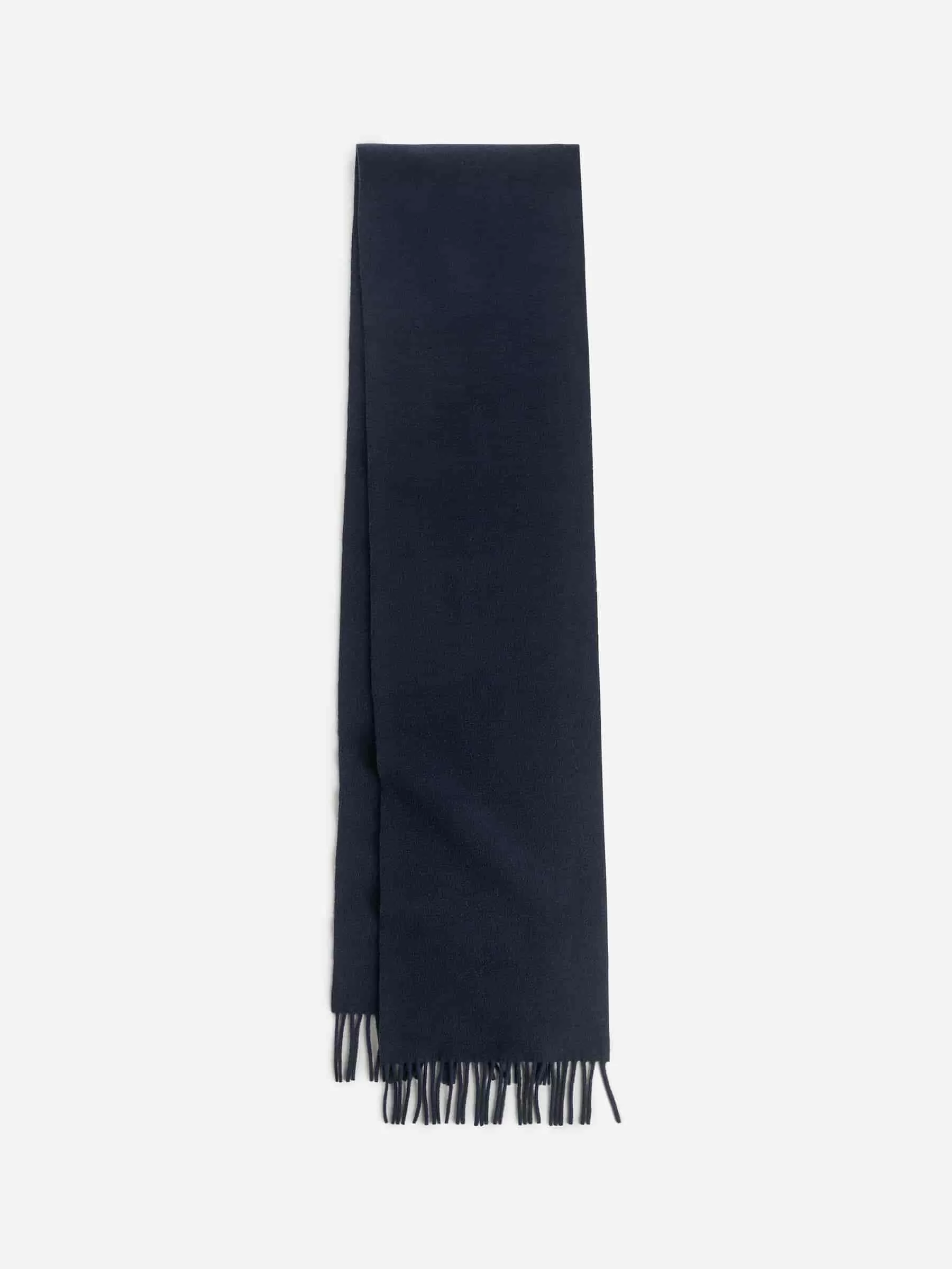 Scarf densely woven from wool. Detailed with fringes along the shorter edges. Measurements 27 cm x 250 cm.