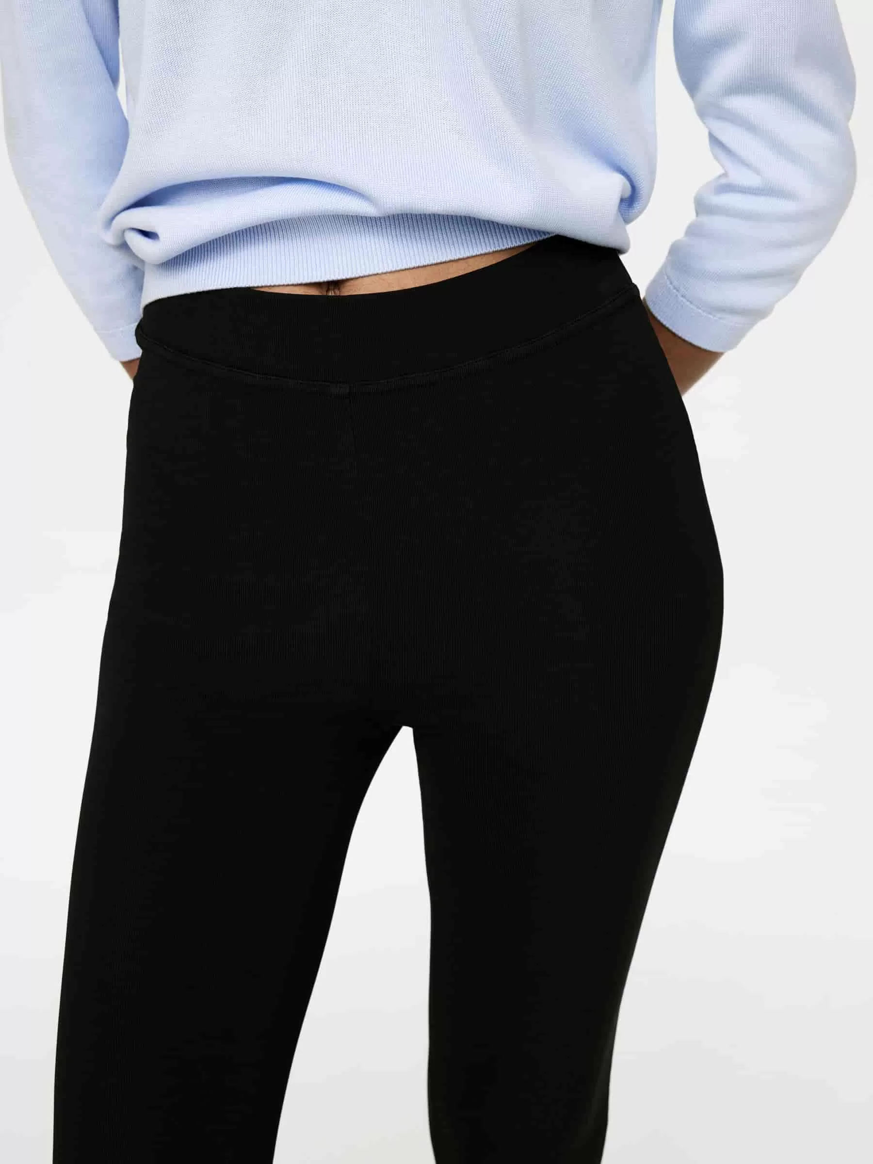 Slim-fit leggings featuring a compact ribbed texture. Cut for a high waist with zip details at bottom legs.