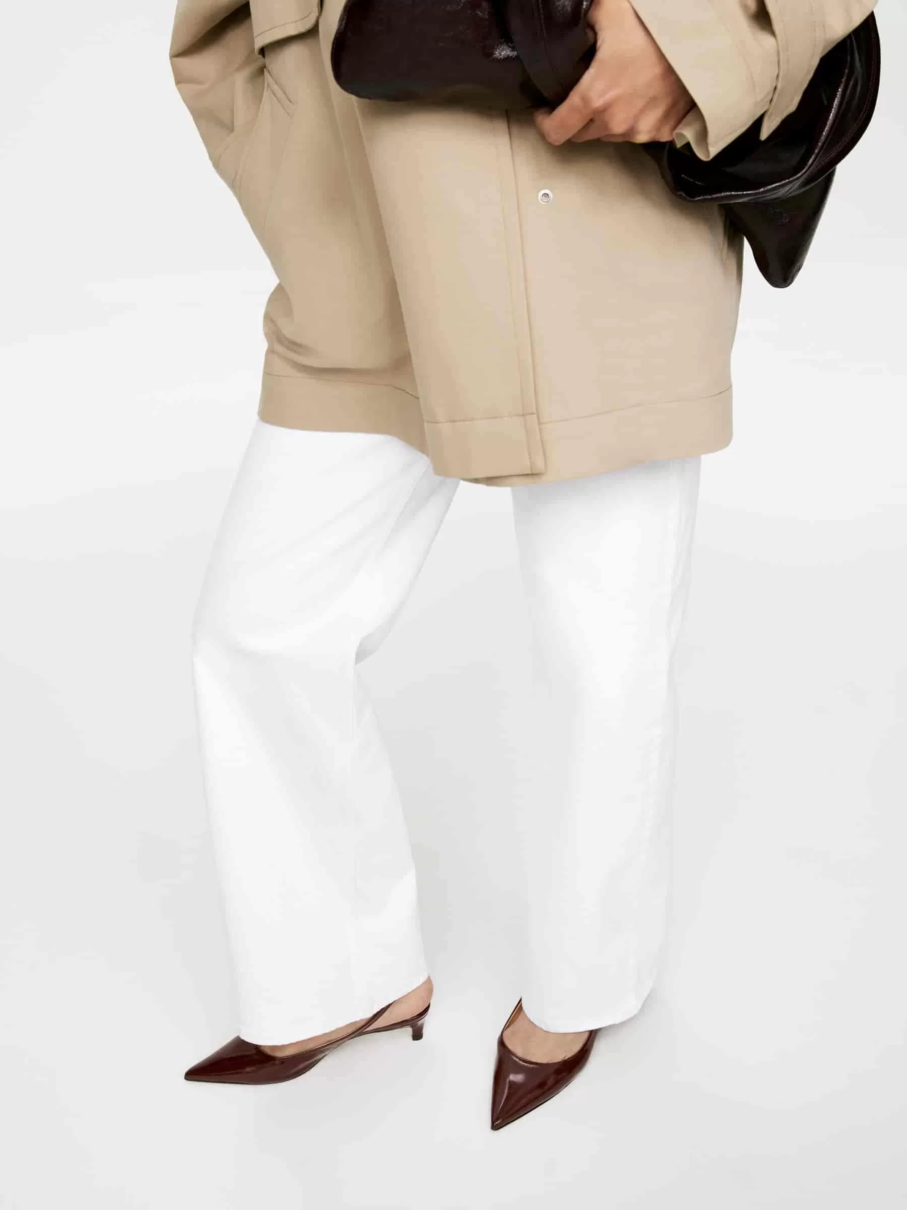 Slingback pumps with in a glossy leather quality with a pointy toe. Gold-toned buckle closure at side. Heel height 4 cm.